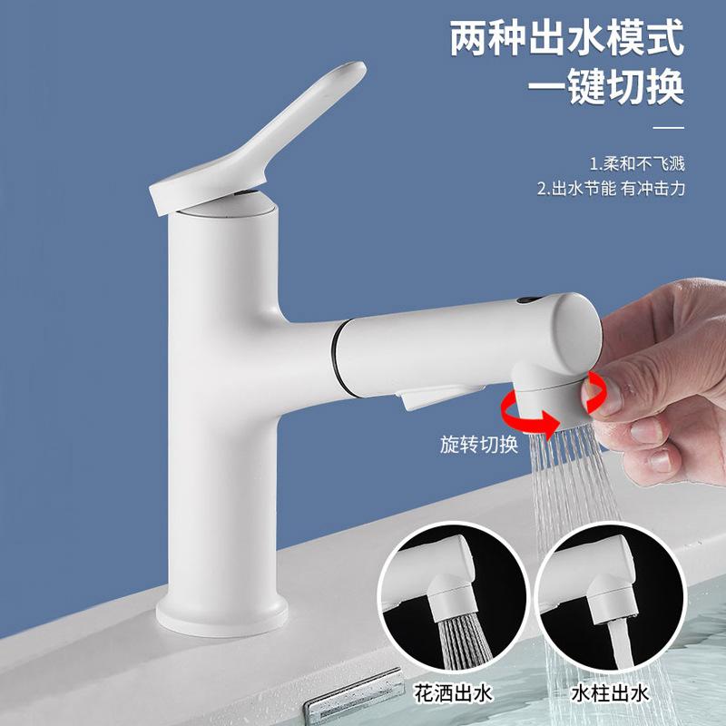 Grifo extraíble para lavabo todo de cobre, para agua fría y caliente, grifo para lavabo de baño, grifo blanco de tres funciones