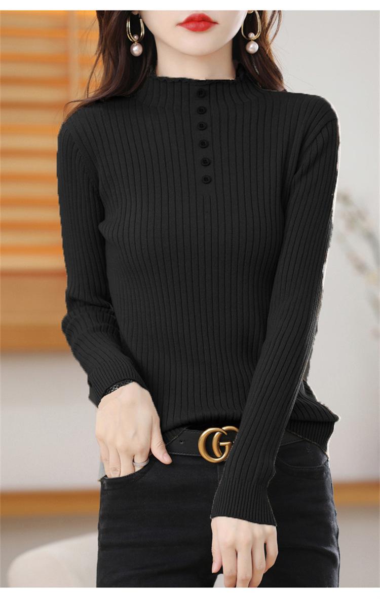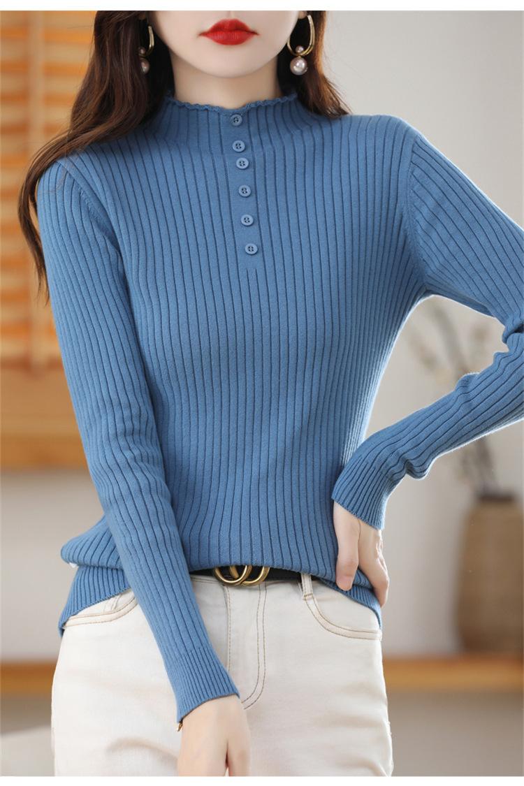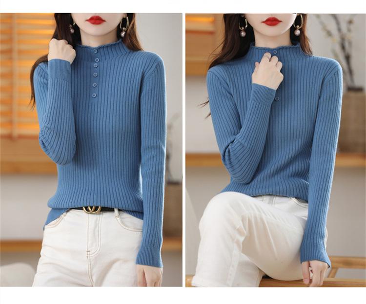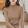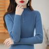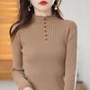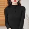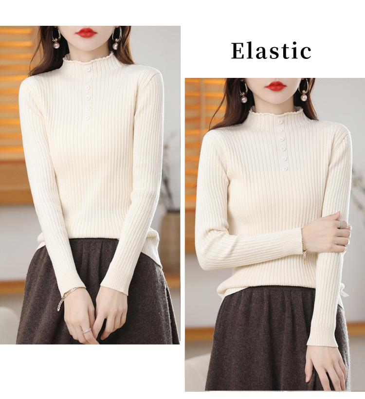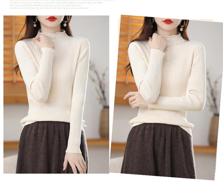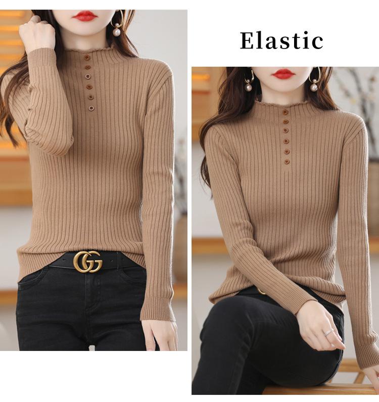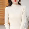 Suéter Base de Corte Slim para Mujer Otoño e Invierno Nuevo Interior con Cordón de Algodón Camiseta Base Cuello Alto Medio Suéter Cuello Alto para Mujer