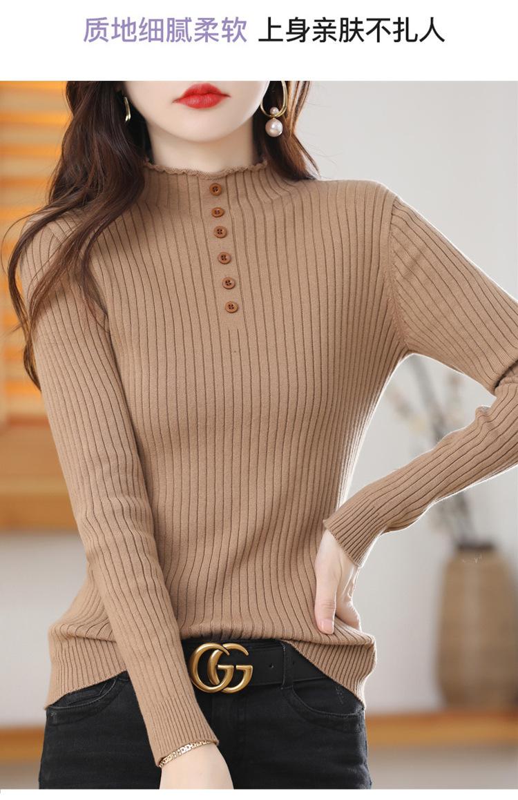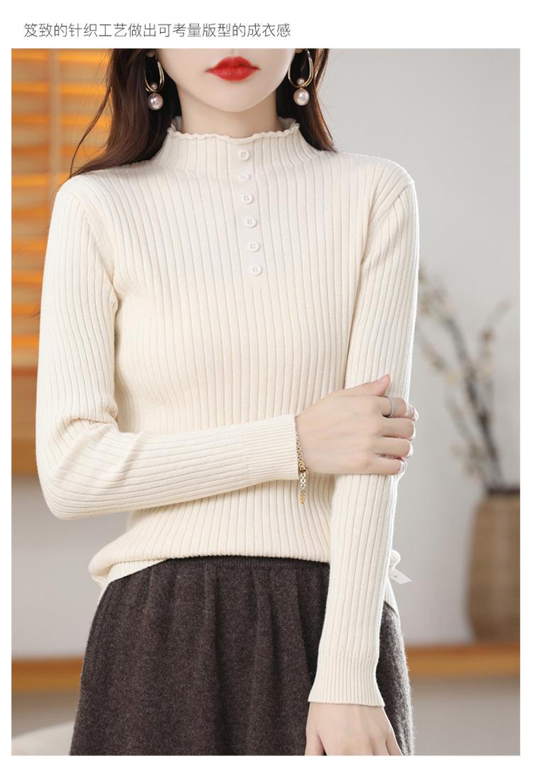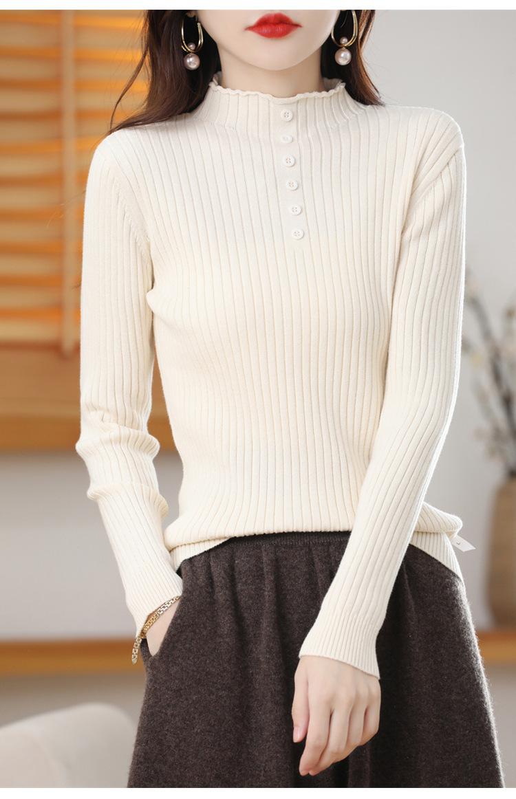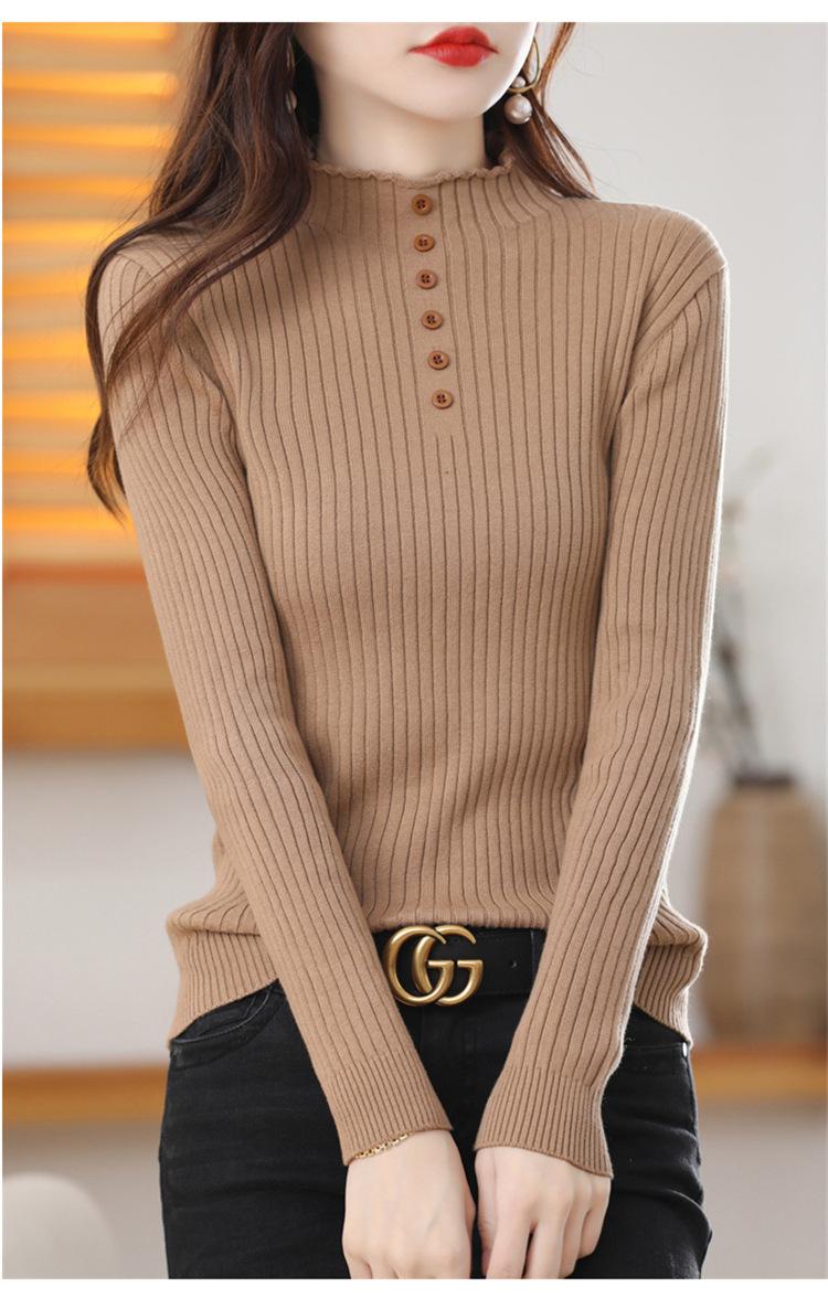 Suéter Base de Corte Slim para Mujer Otoño e Invierno Nuevo Interior con Cordón de Algodón Camiseta Base Cuello Alto Medio Suéter Cuello Alto para Mujer