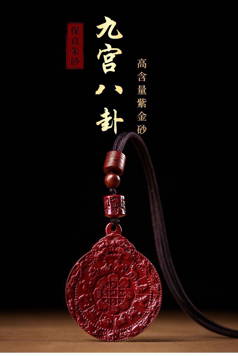 Colgante Bagua de Cinabrio Mineral Bruto Arena Dorada Púrpura Colgante Bagua Taoísta de los Nueve Palacios para Hombres y Mujeres Protección Año del Zodíaco Tai Sui