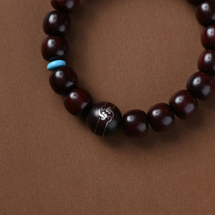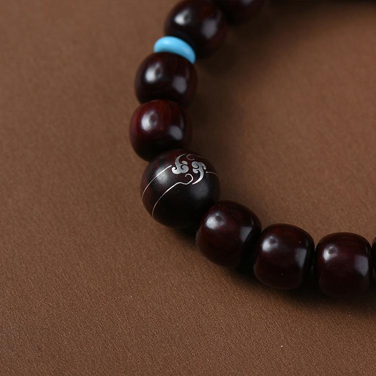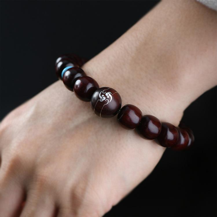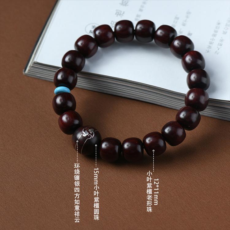 Small-leaf rosewood old-shaped beads inlaid with silver square ruyi bracelets