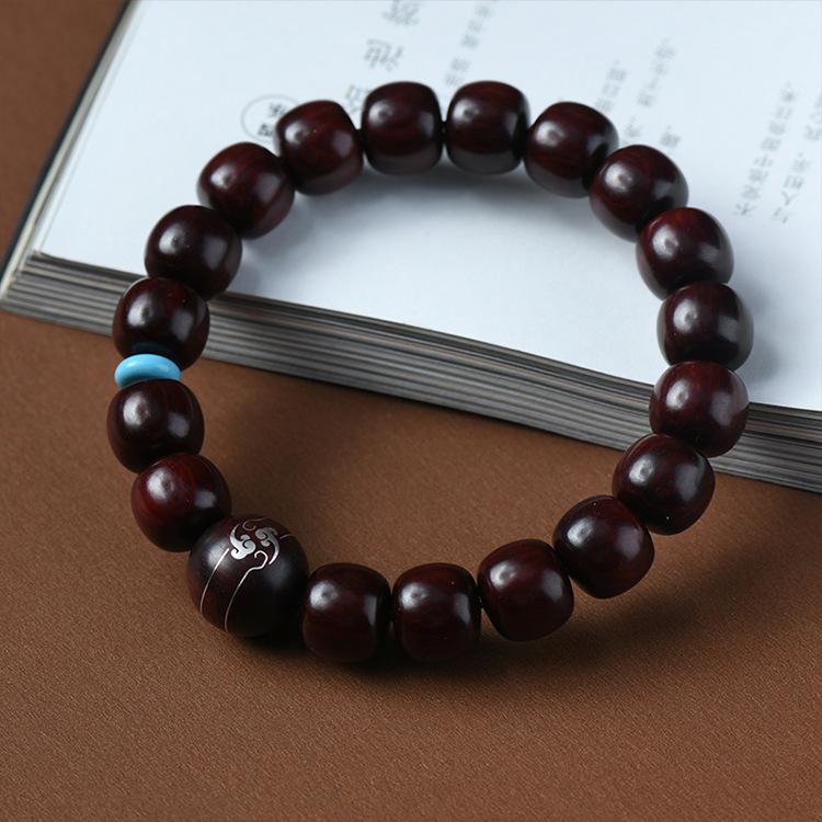 India sándalo rojo lobulado cuentas antiguas incrustadas pulsera Ruyi pulsera para hombres y mujeres marea nacional joyería vintage fabricantes venta al por mayor