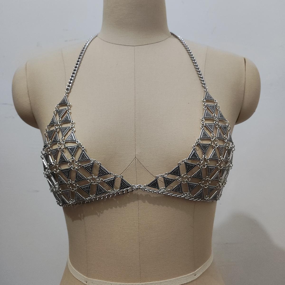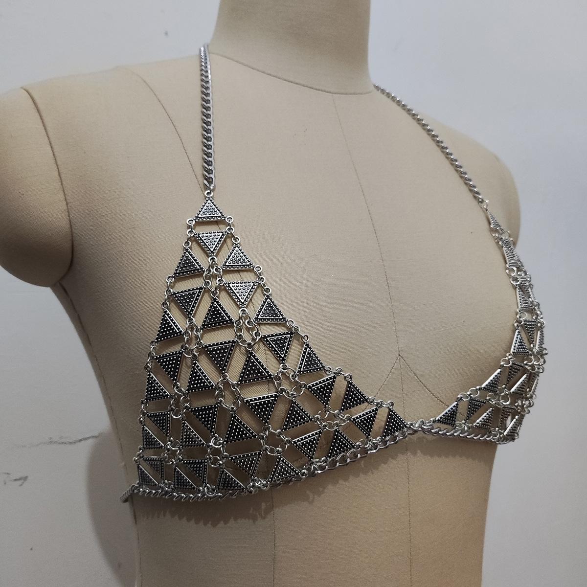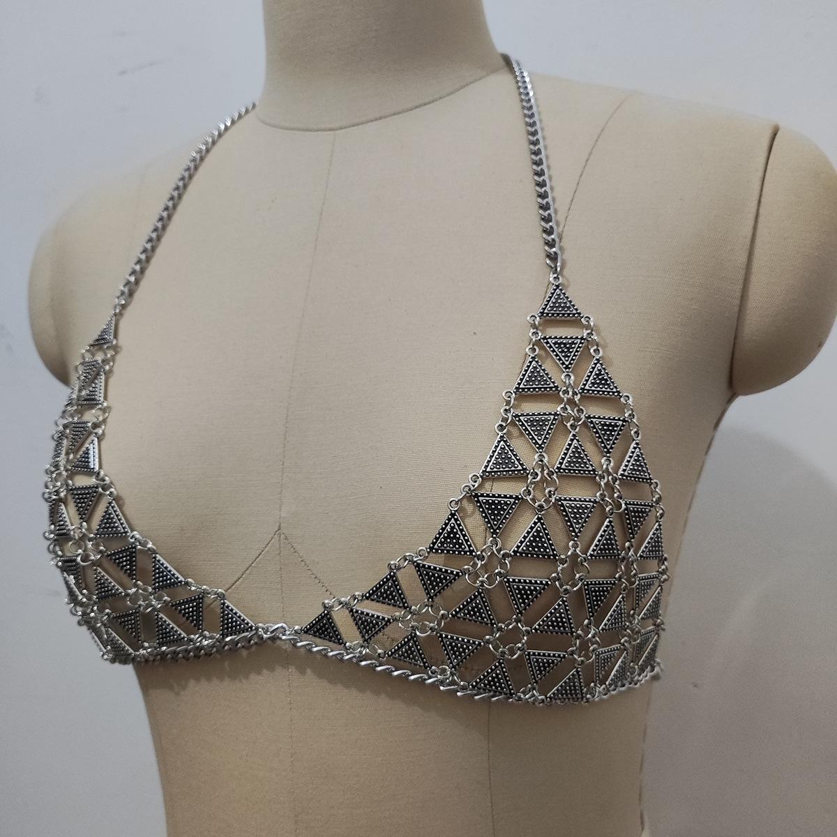 Estilo europeo y americano nueva cadena sexy para el pecho de bikini caliente cadena corporal geométrica triangular exagerada para mujeres