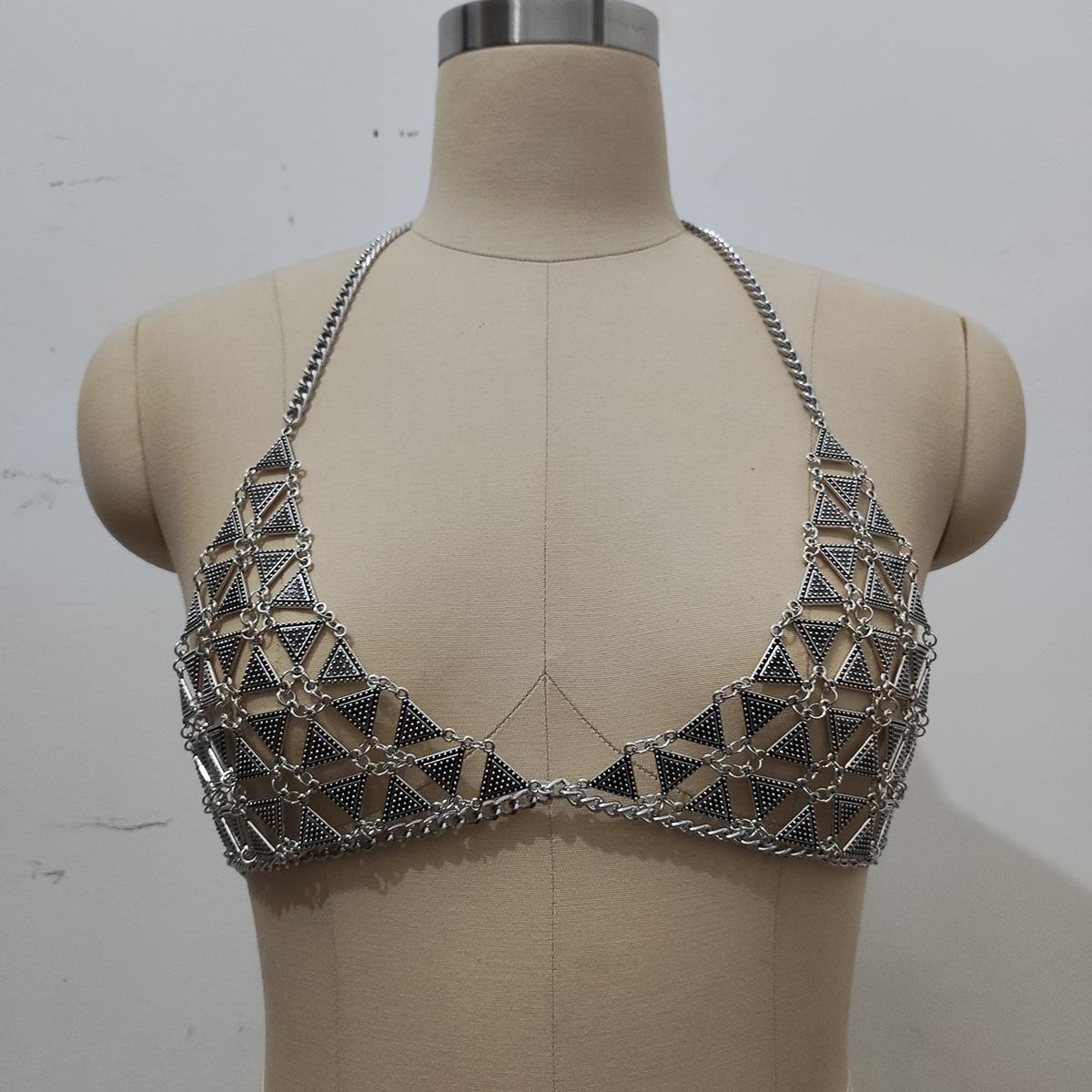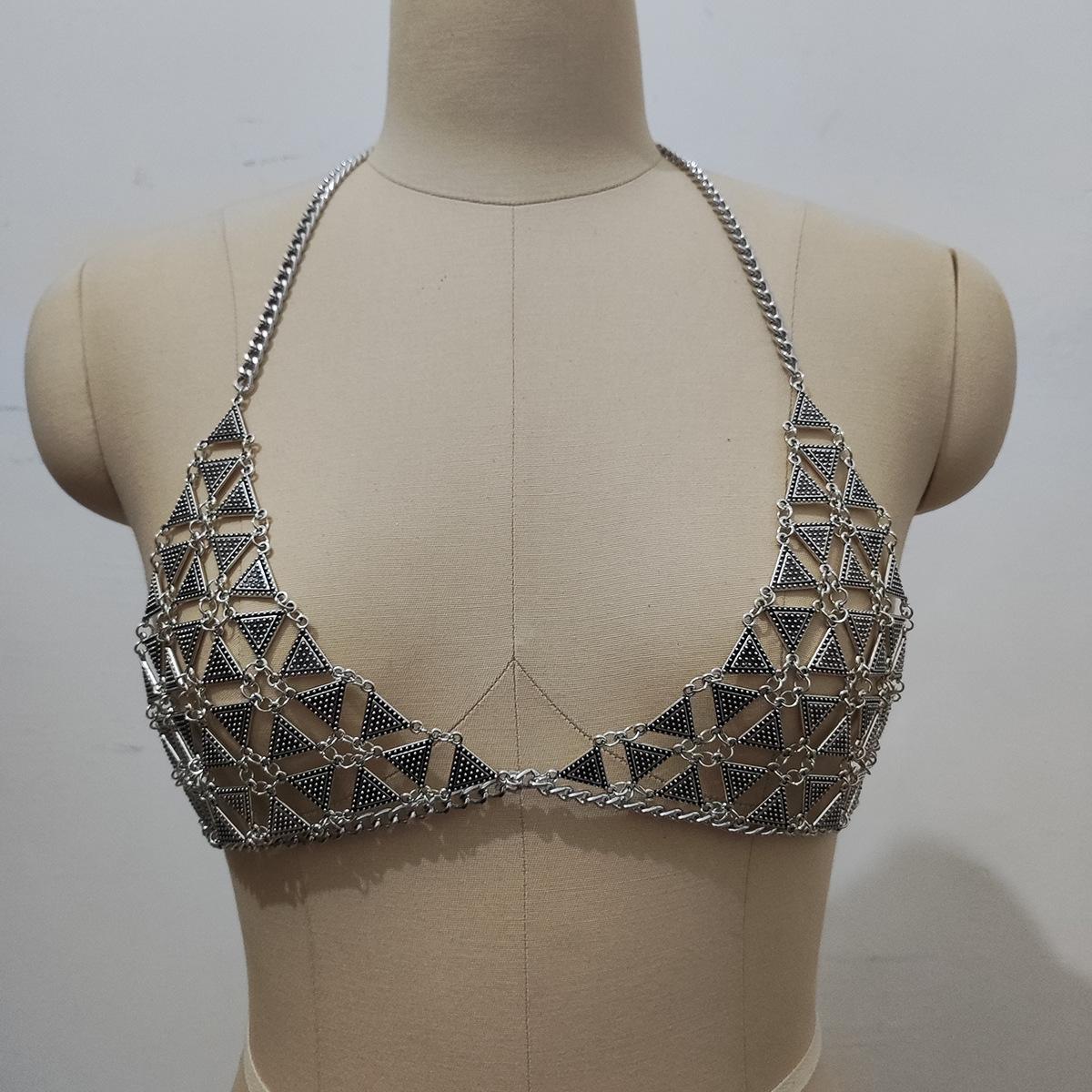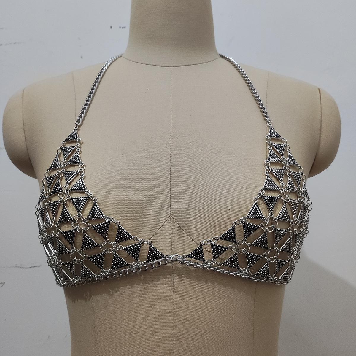 Estilo europeo y americano nueva cadena sexy para el pecho de bikini caliente cadena corporal geométrica triangular exagerada para mujeres