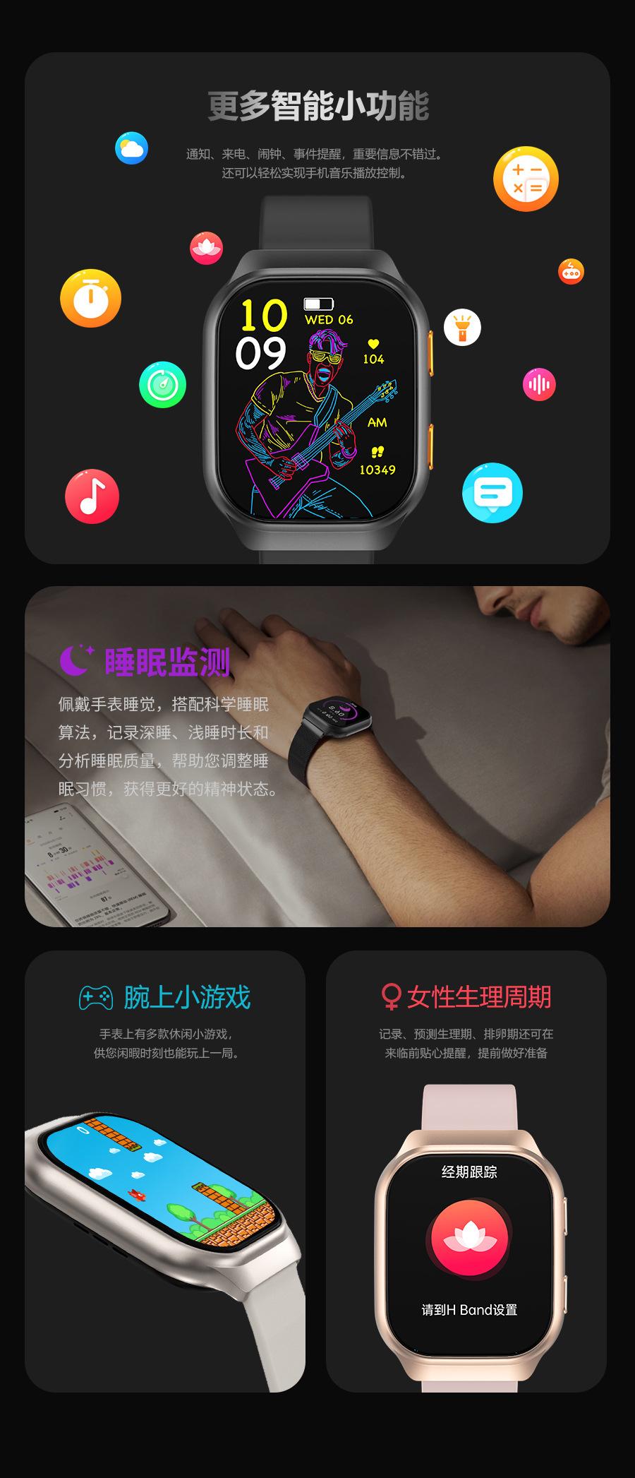 Waterproof, Step counting, Heart rate monitoring, blood pressure measurement, Social Entertainment, Bluetooth ...