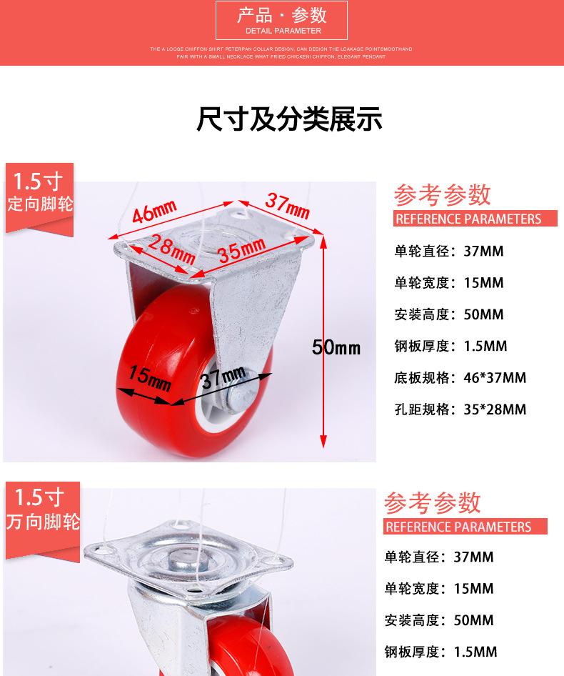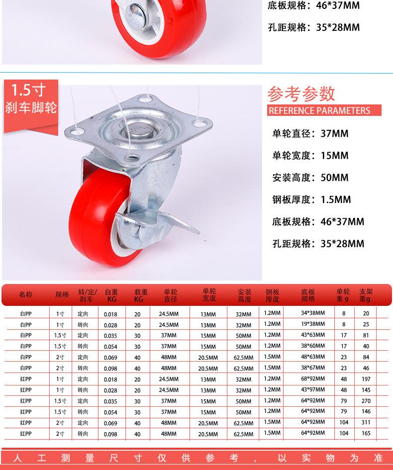 Ruedas pequeñas de dirección de PP de 1 pulgada y 1.5 pulgadas al por mayor Blancas Rojas fijas Ruedas de plástico ligeras universales