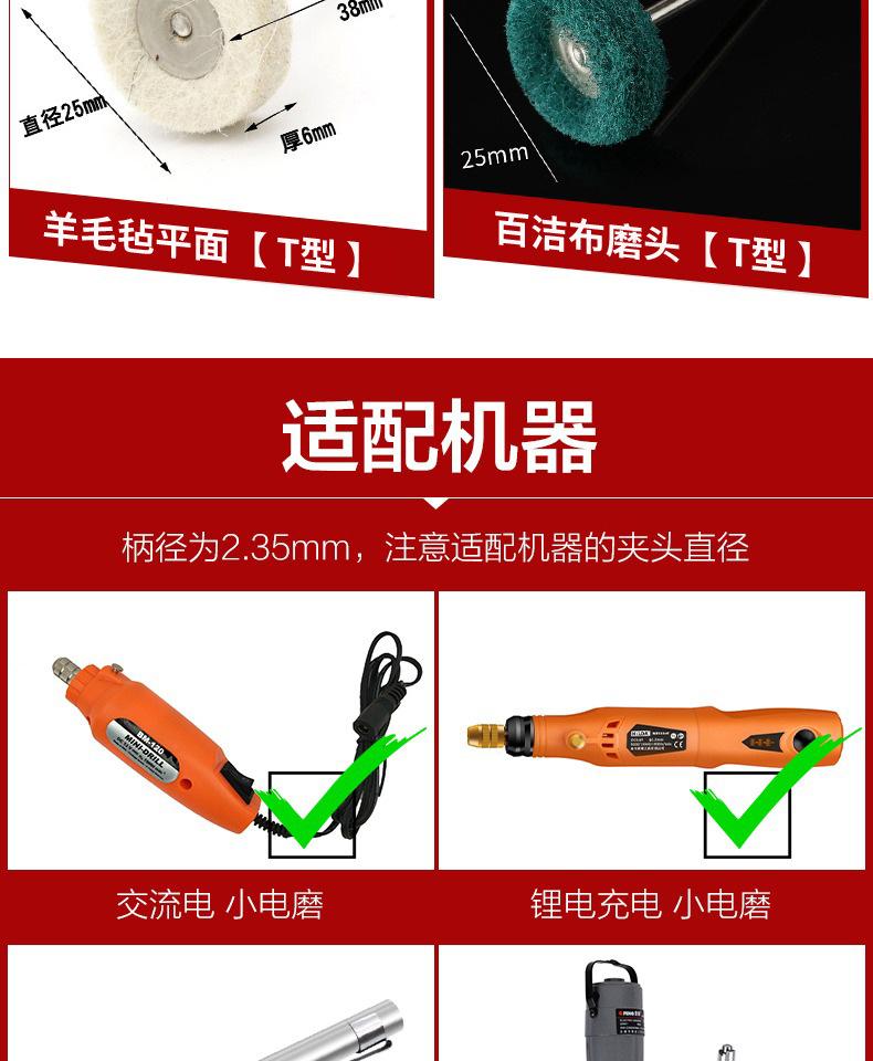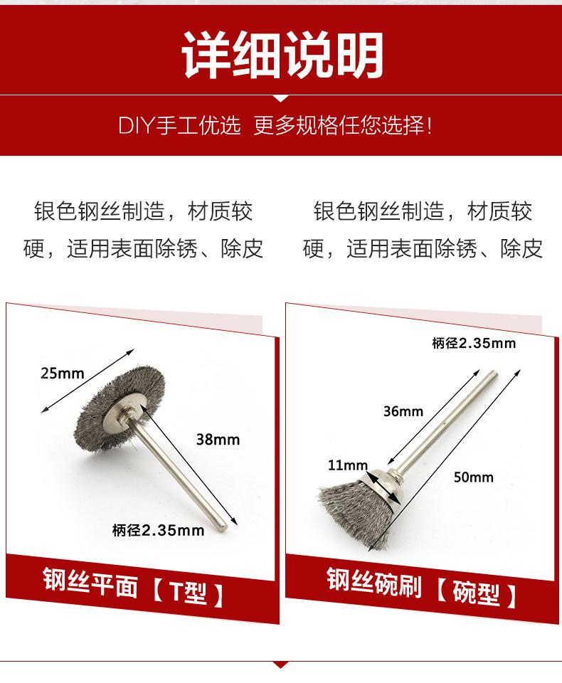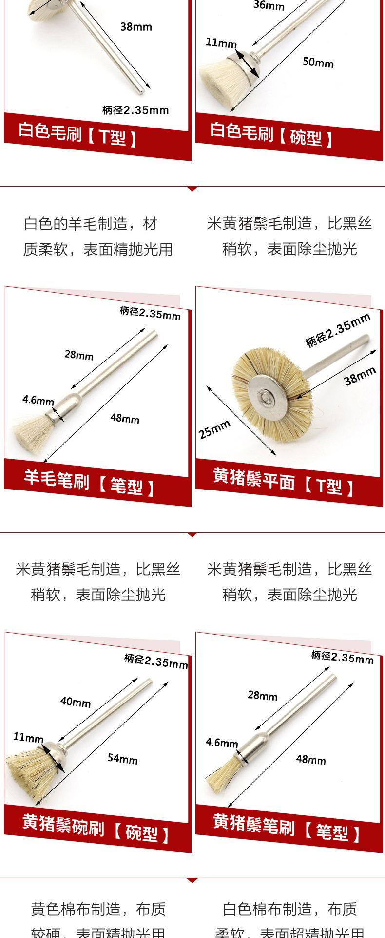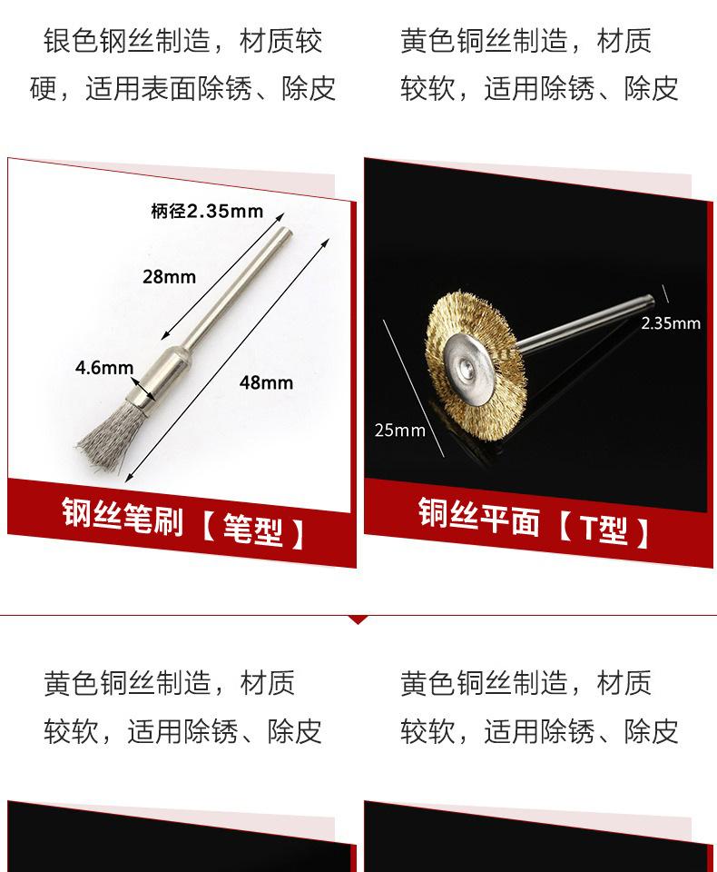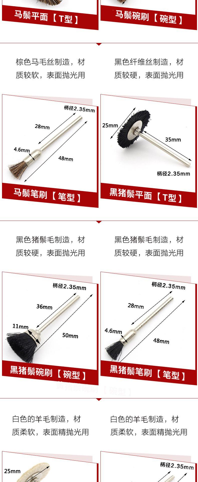 15-piece set [bristle, horsehair, wool, steel wire, copper wire combination] 2.35mm handle, T type 2.35*25mm s...