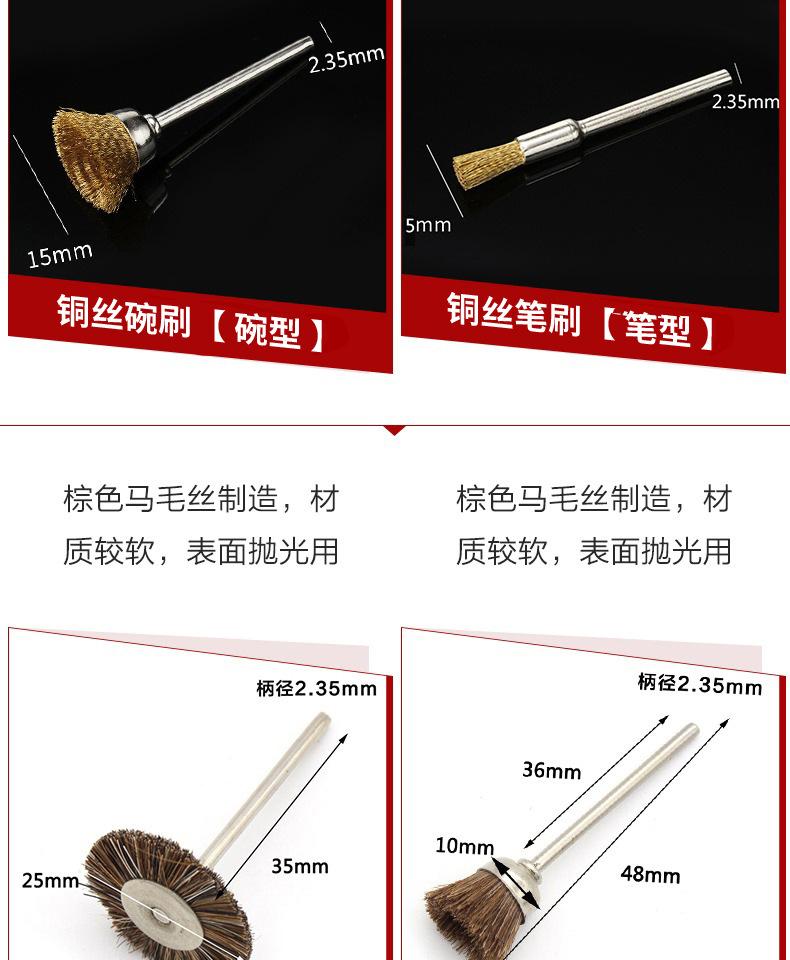 15-piece set [bristle, horsehair, wool, steel wire, copper wire combination] 2.35mm handle