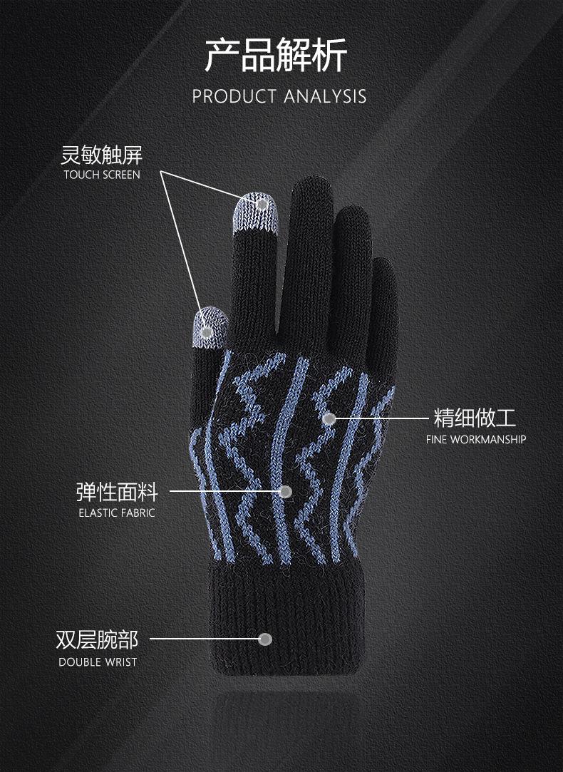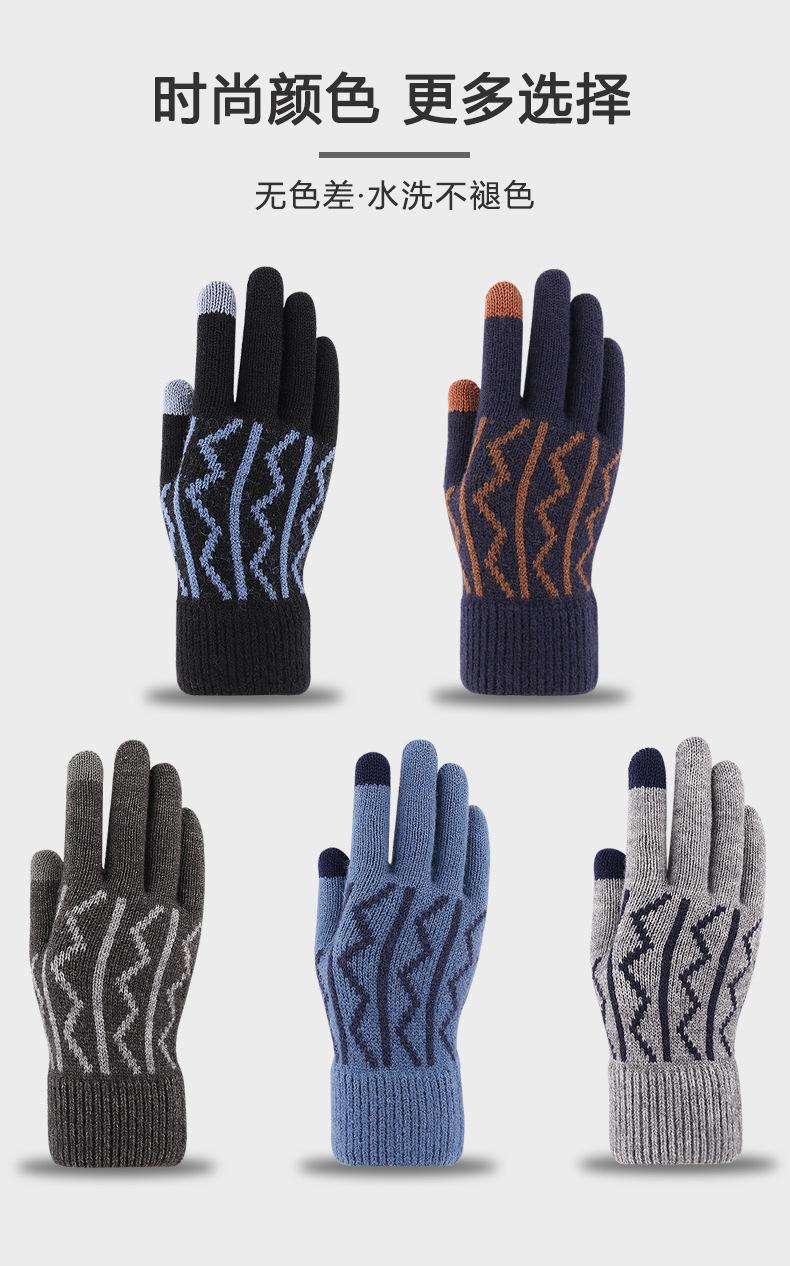 Guantes cálidos con pantalla táctil para hombre, de otoño e invierno, tejidos con forro polar, de lana gruesa jacquard, disponibles directamente de fábrica.