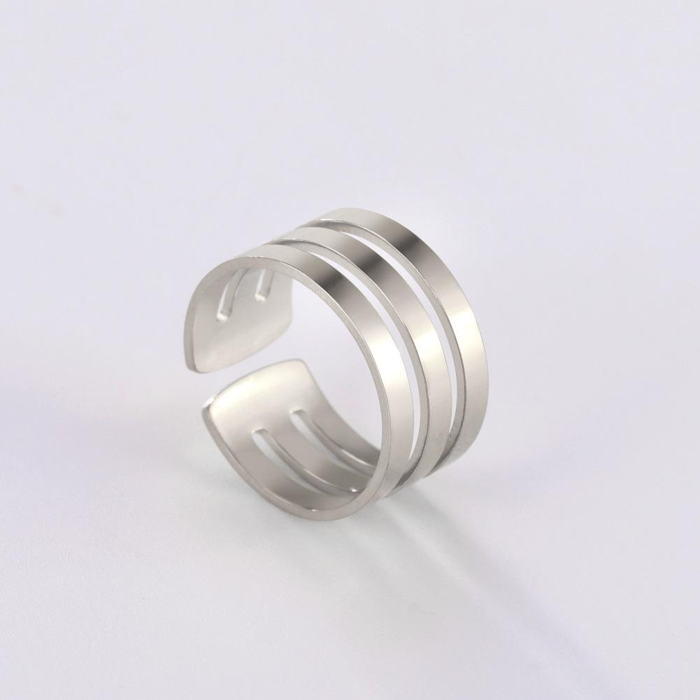 Three-ring titanium steel open ring, Simple