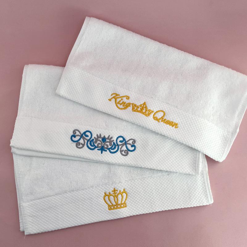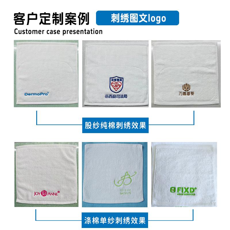 Toalla pequeña de algodón blanca cuadrada pequeña de 30 x 30 cm para hotel, catering, guardería, logotipo bordado, venta al por mayor