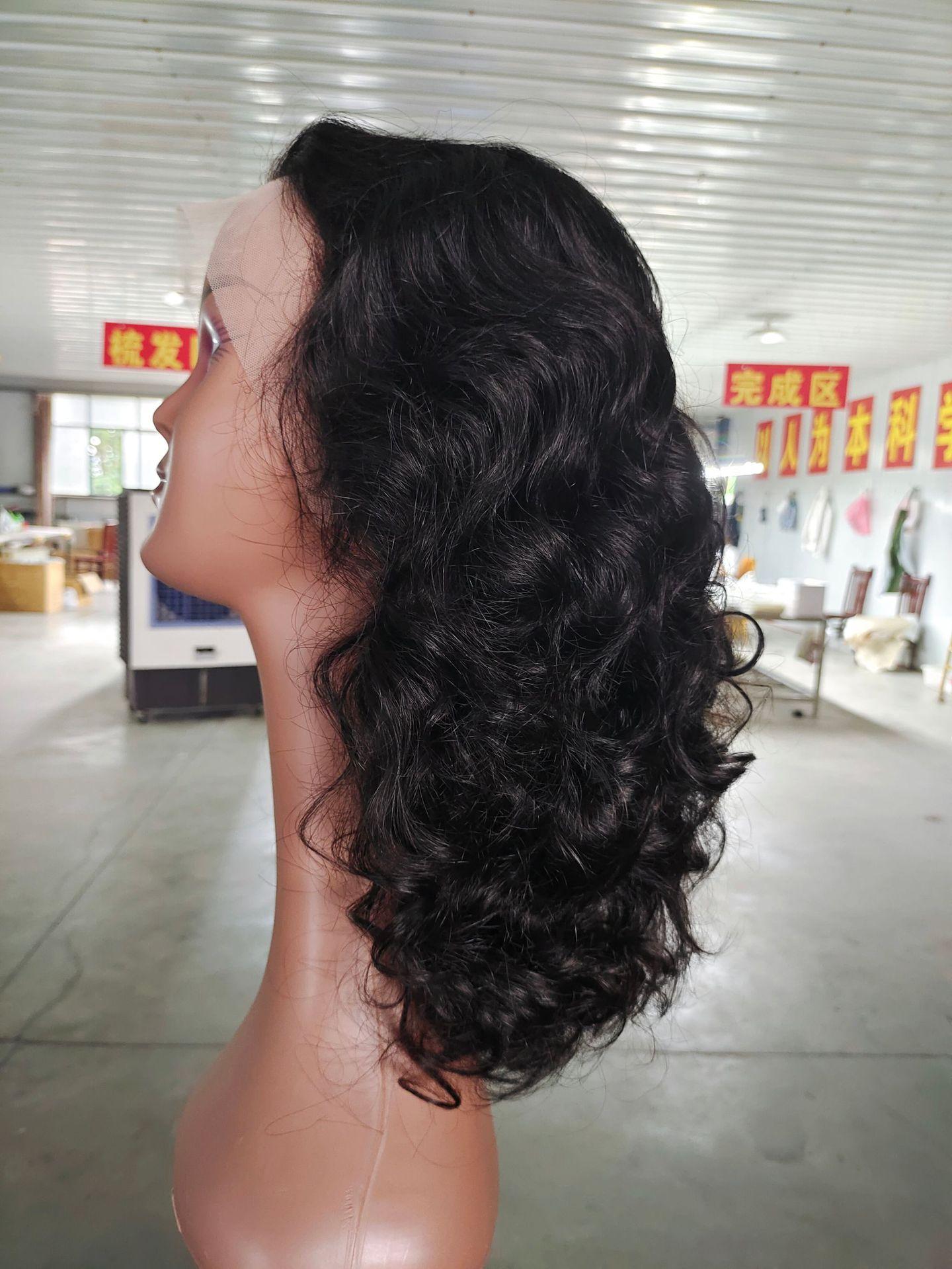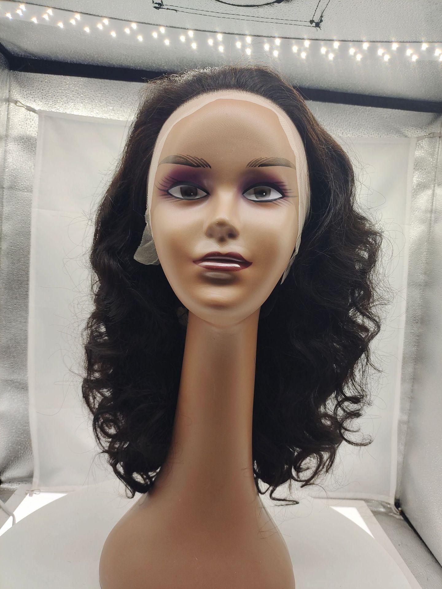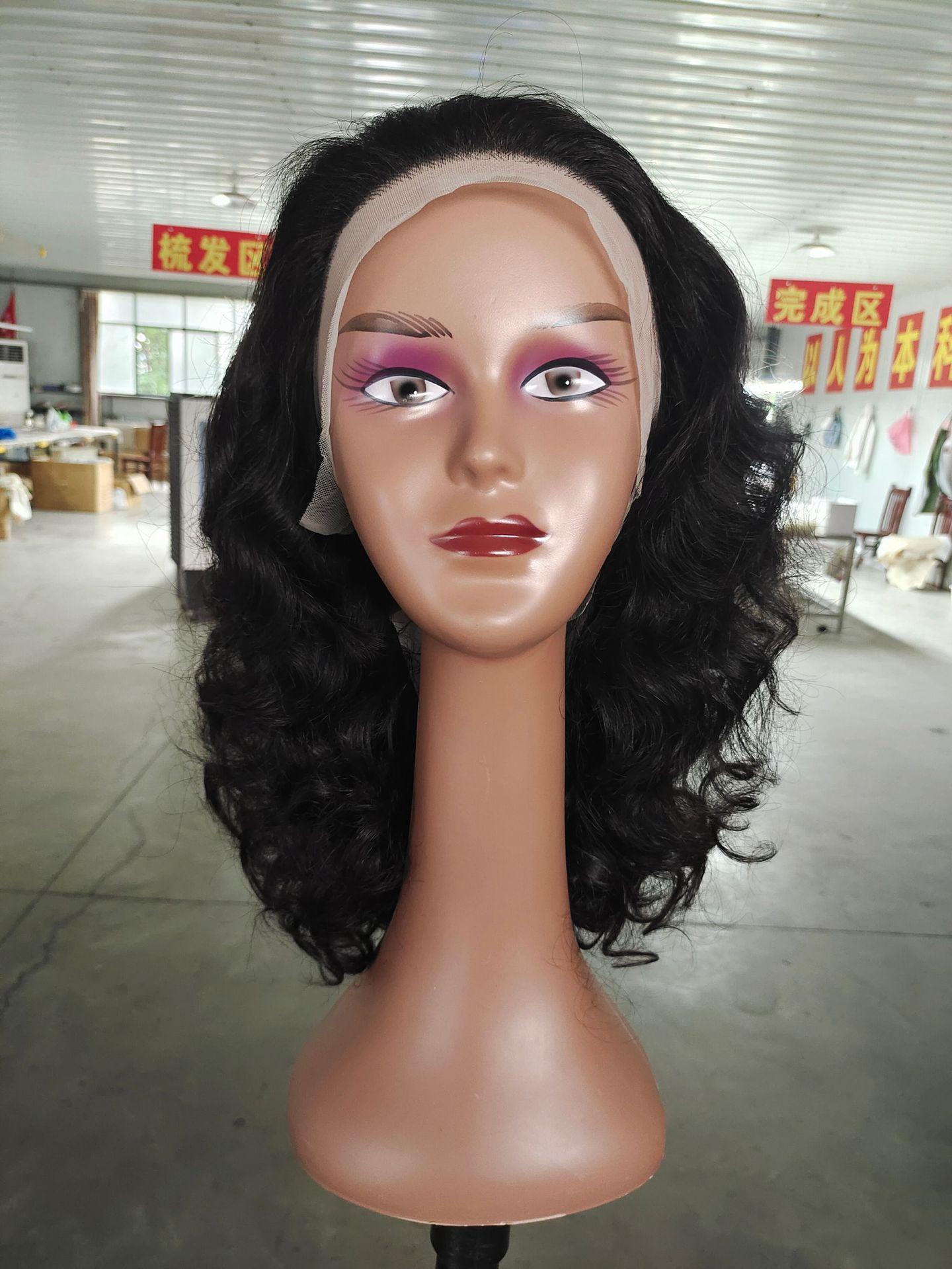 Pelucas rizadas nuevas de longitud media encaje frontal tocado de mujer 13X4 peluca negra de la vida real cubierta de cabello