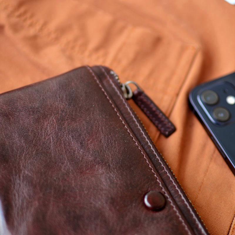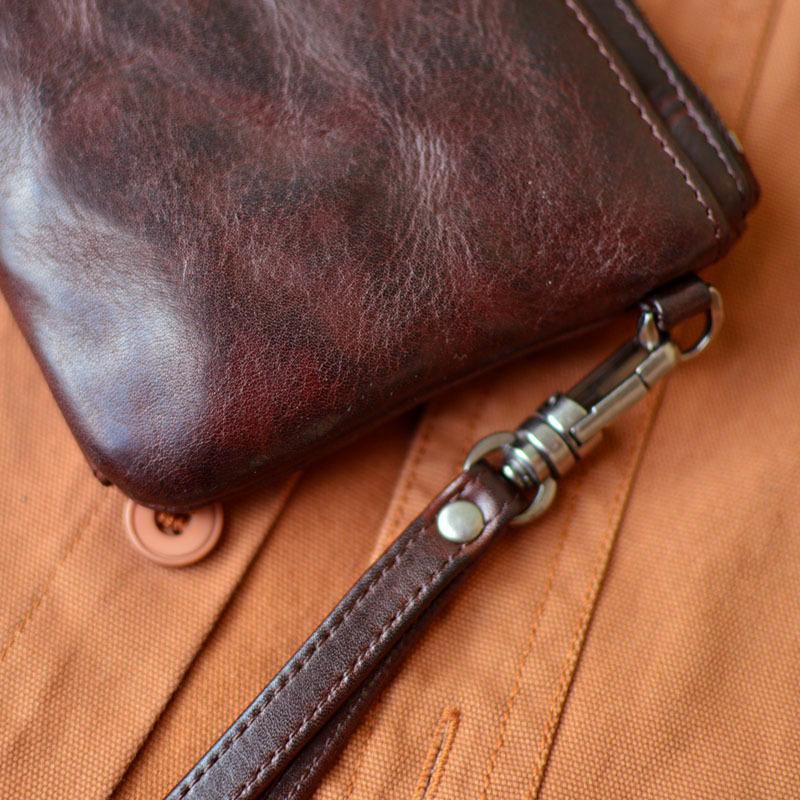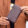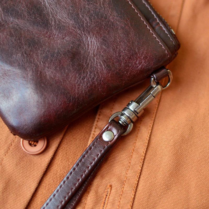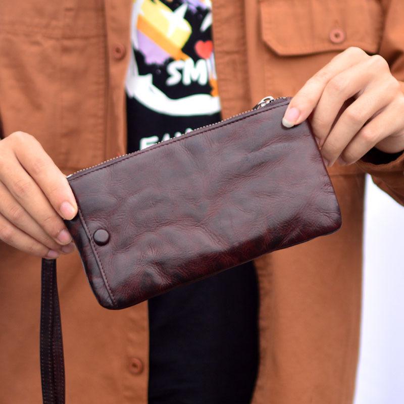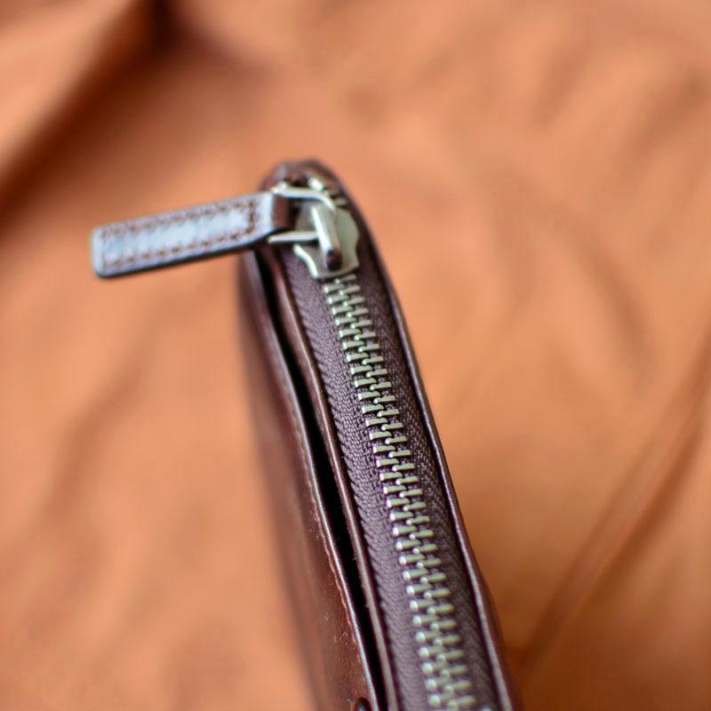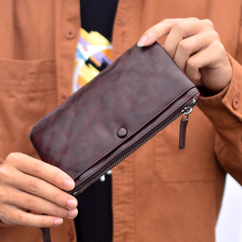 Cartera de negocios para hombre, con cremallera larga, de cuero genuino, tarjetero, multifuncional, de gran capacidad, hecha a mano.