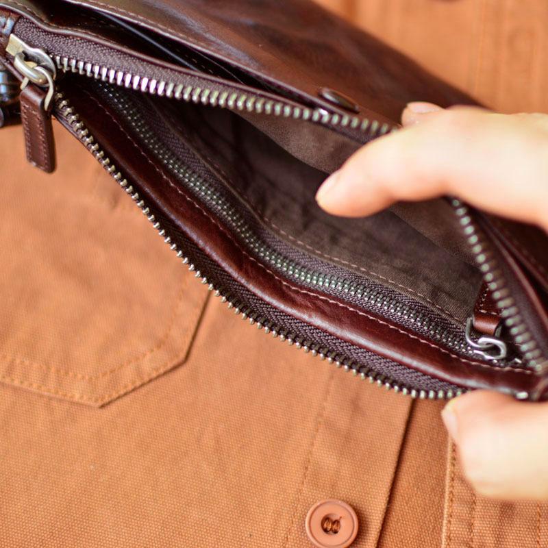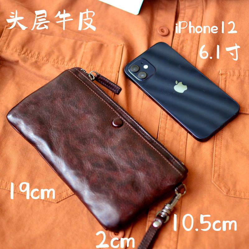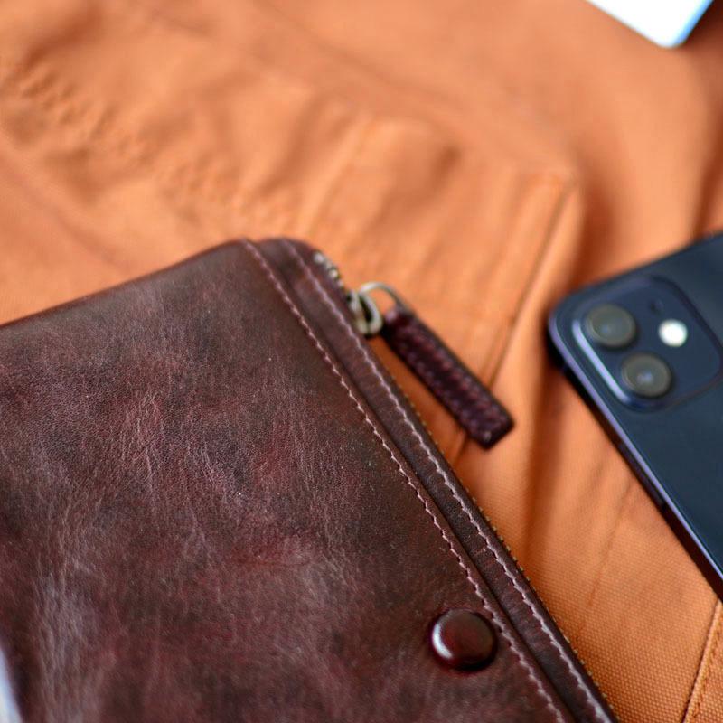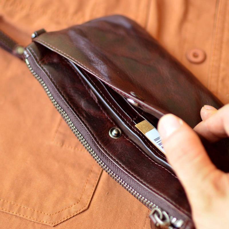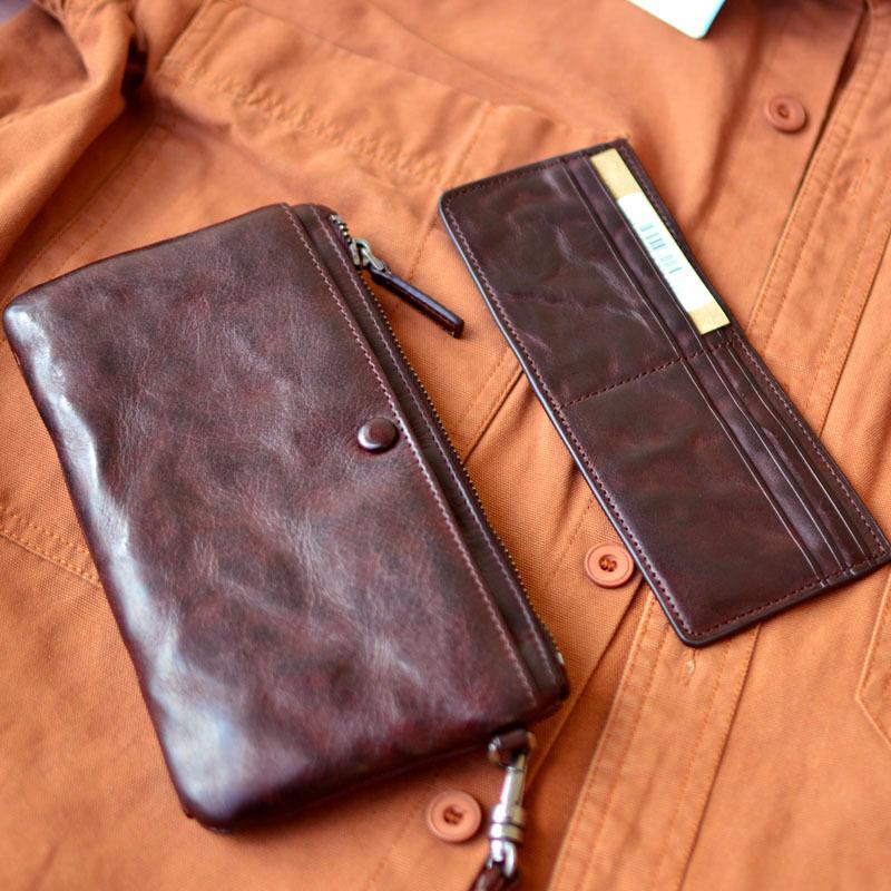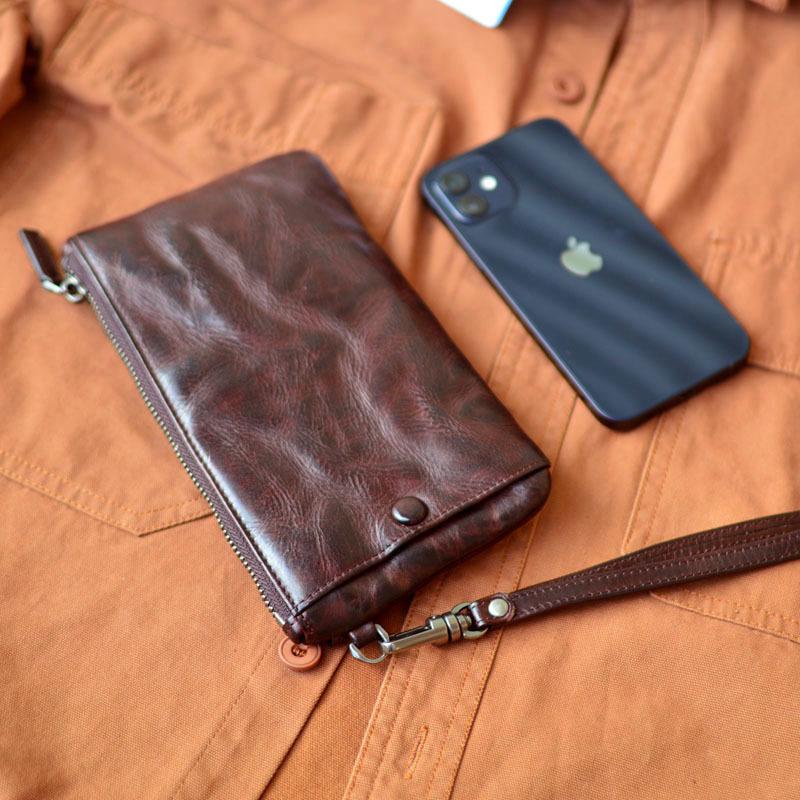 Cartera de negocios para hombre, con cremallera larga, de cuero genuino, tarjetero, multifuncional, de gran capacidad, hecha a mano.