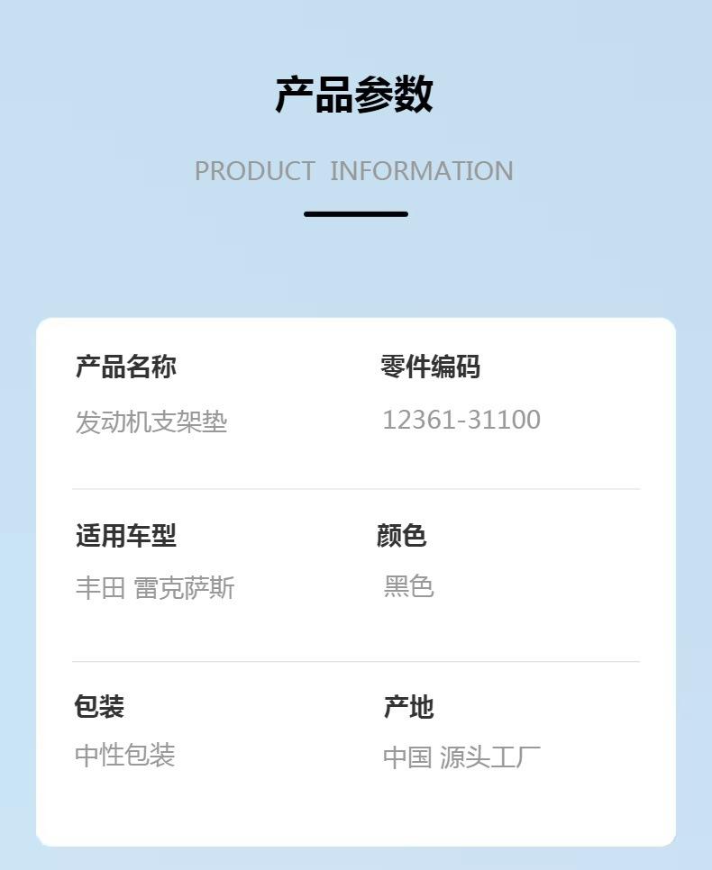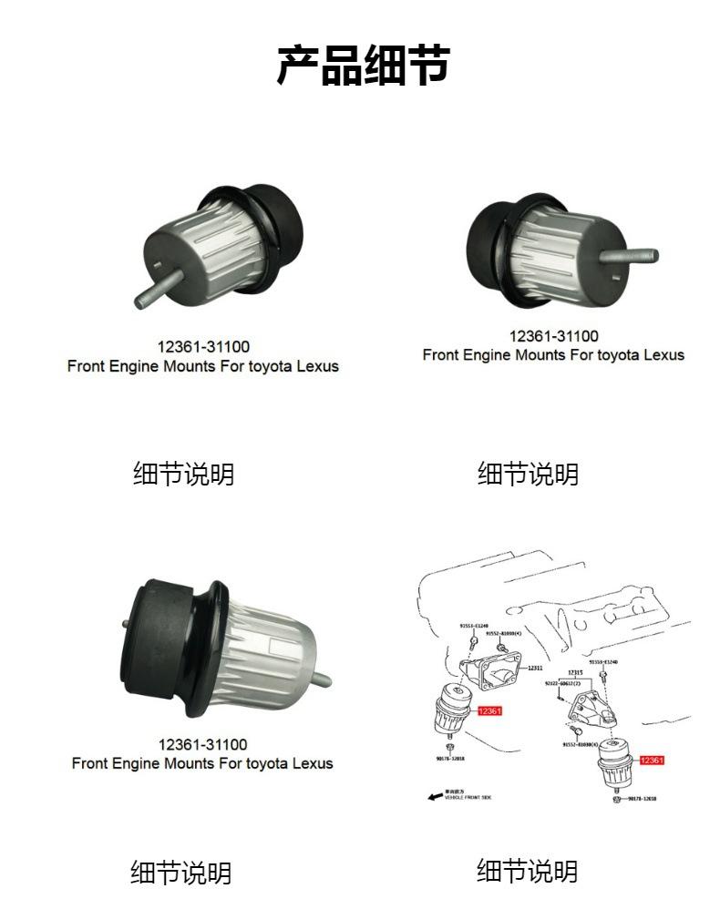 Absorción de impactos resistente al desgaste látex natural adecuado para soporte de motor Toyota Lexus almohadilla 12361-31100