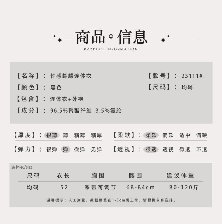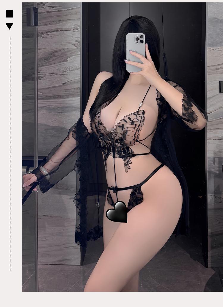 Lencería sexy de talla grande perspectiva sexy top de mariposa con tirantes traje de una pieza de tres puntos exterior traje de cobertura tentación 23111