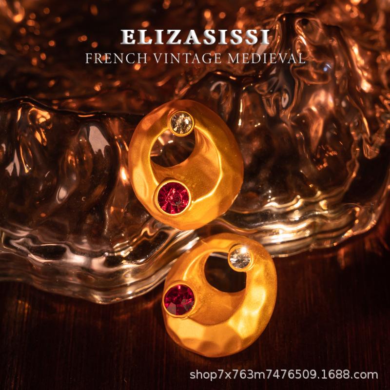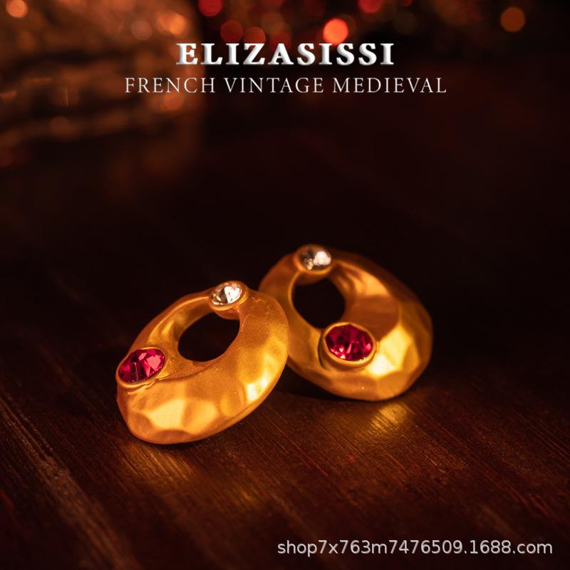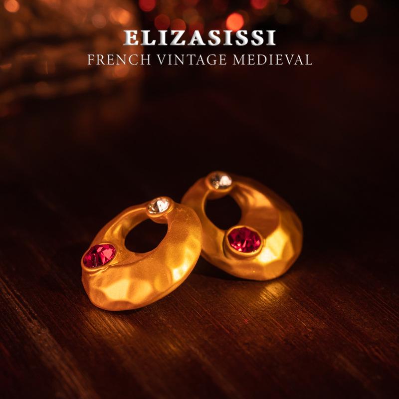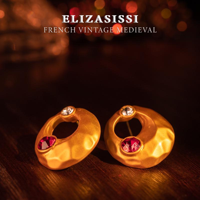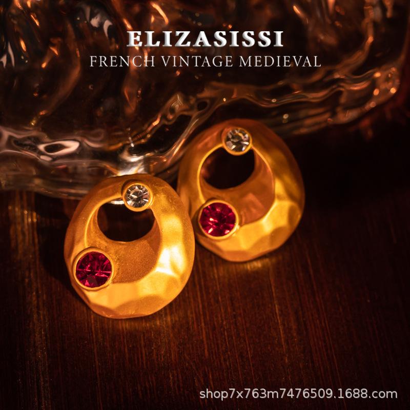 Aretes de Tuerca Vintage de Lujo Estilo Francés Retro Electrochapados en Oro Real Escarchado con un Diseño de Textura de Alta Gama