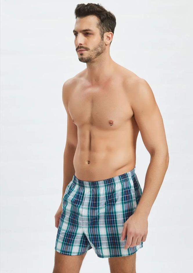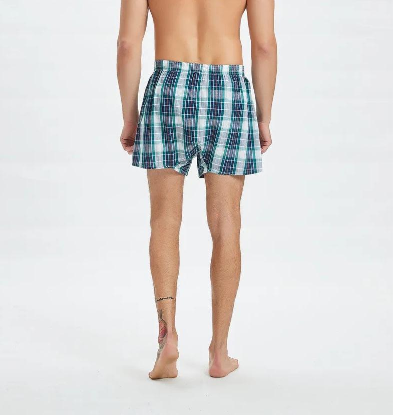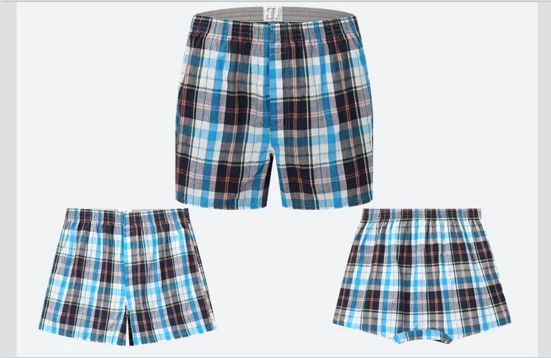 Bóxers de algodón para hombre, pantalones cortos holgados a cuadros y rayas para hombre, ropa interior tejida para hombre