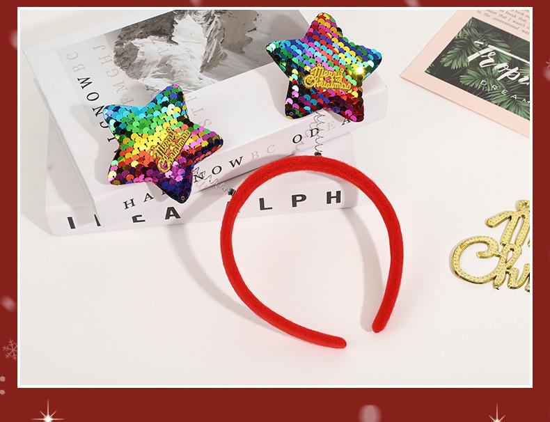 Diadema de decoración navideña, accesorios para fiestas navideñas, diadema, regalo para niños, lentejuelas, diadema de estrella de cinco puntas