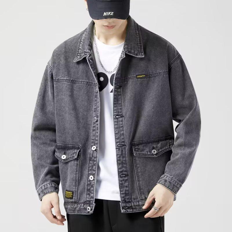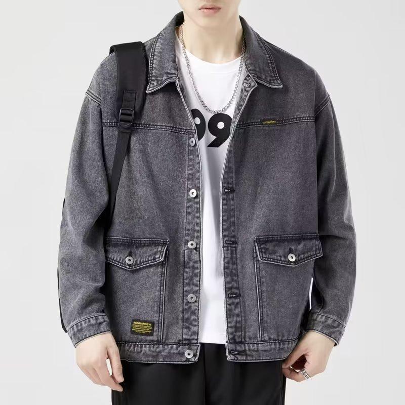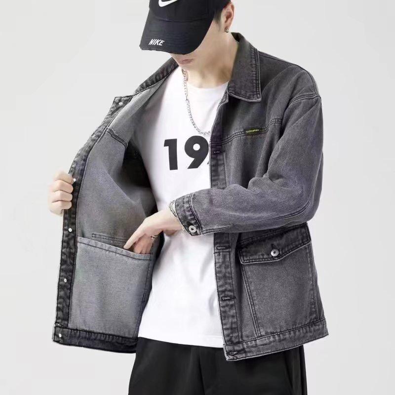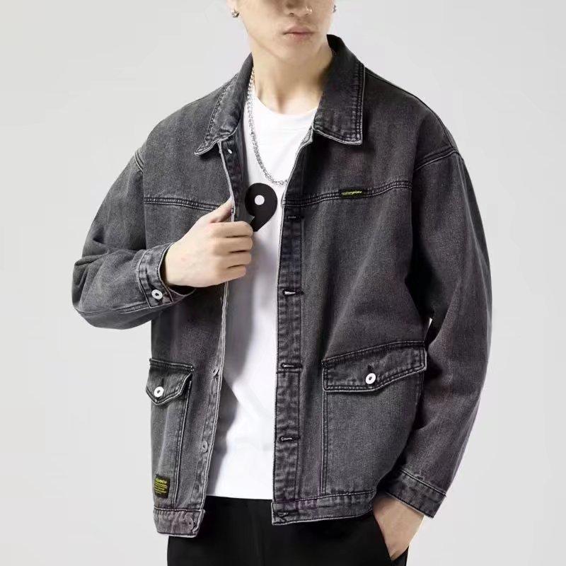 Abrigo vaquero para hombre, ropa de trabajo de primavera y otoño, cárdigan holgado de marca de moda para hombre, chaqueta informal con solapa superior de moda para hombre.