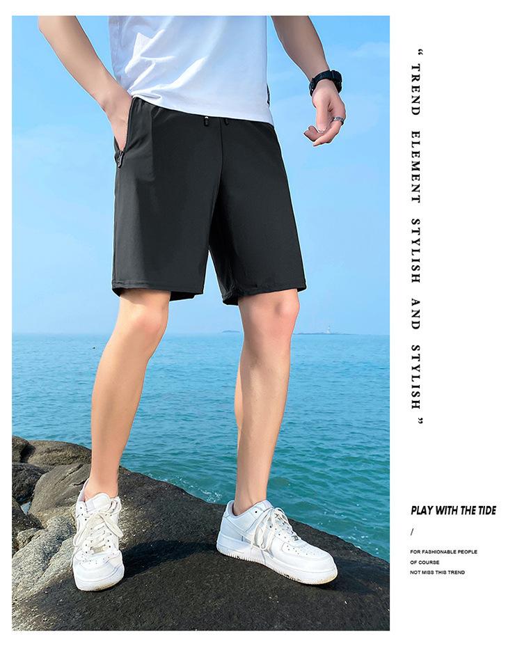 Pantalones cortos de seda de hielo para hombre, directos de fábrica, de verano, finos, deportivos, informales, de secado rápido, para playa, cinco puntos rectos y sueltos