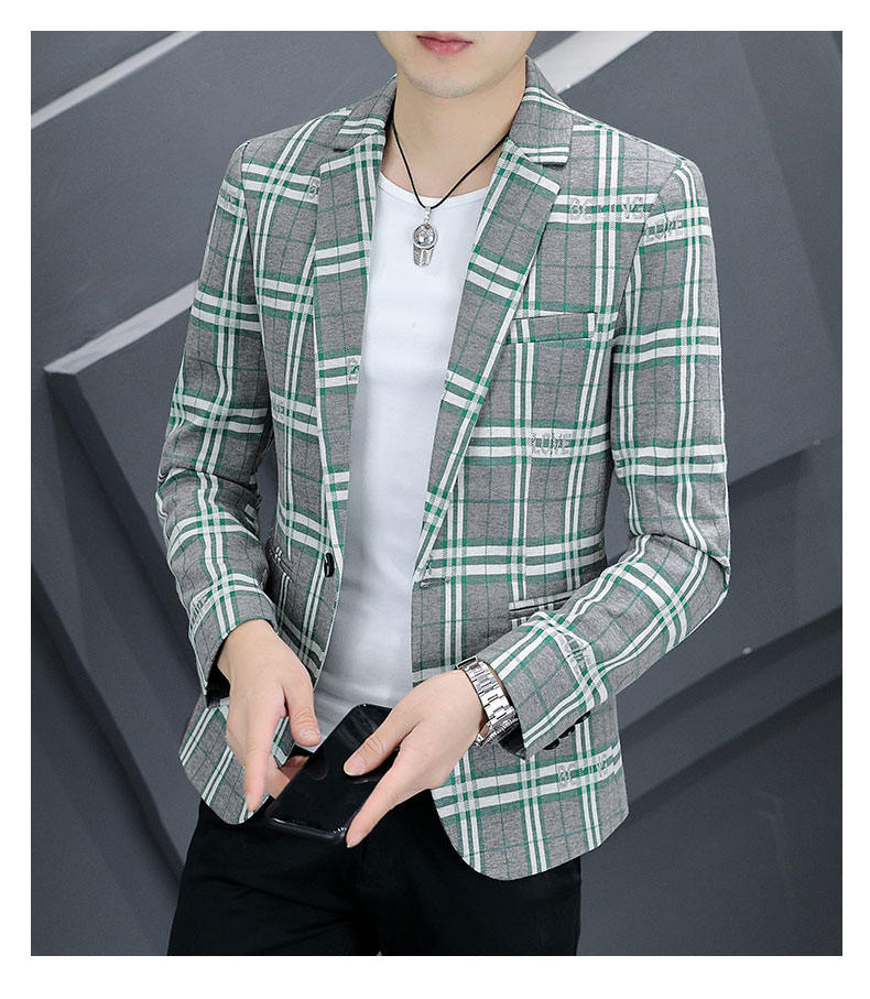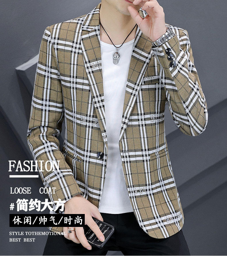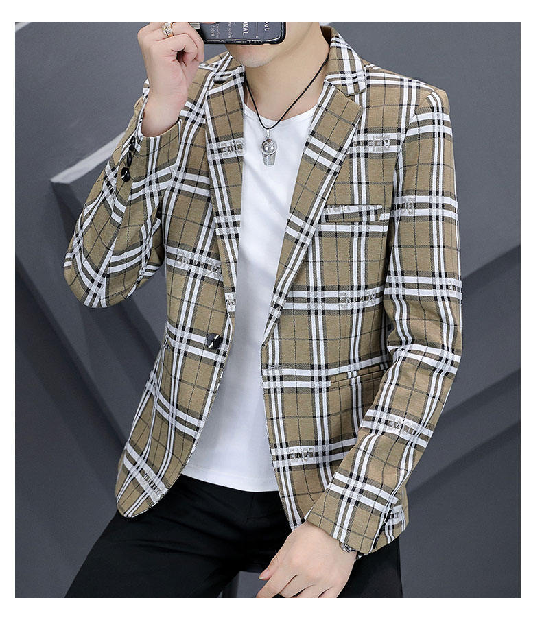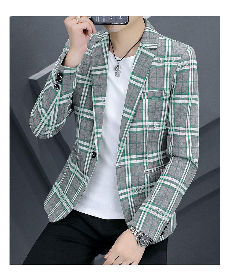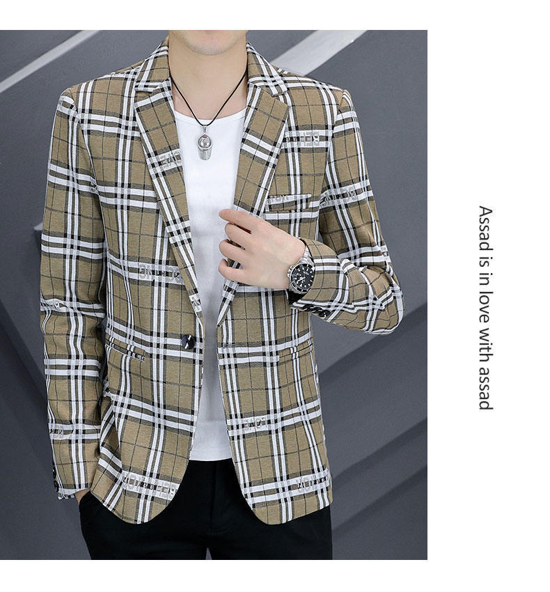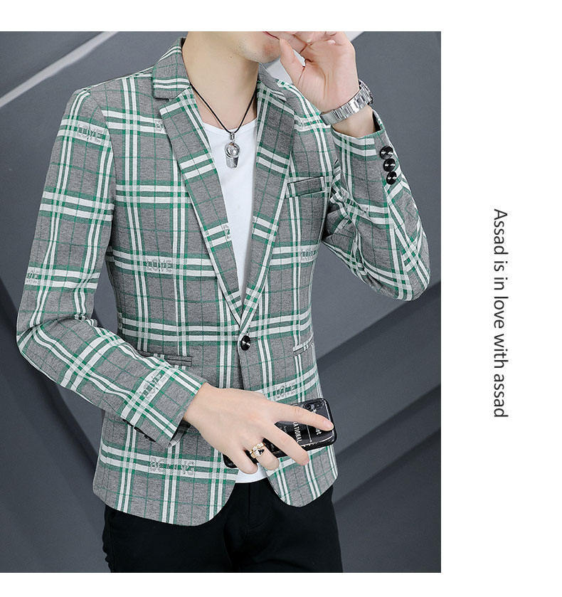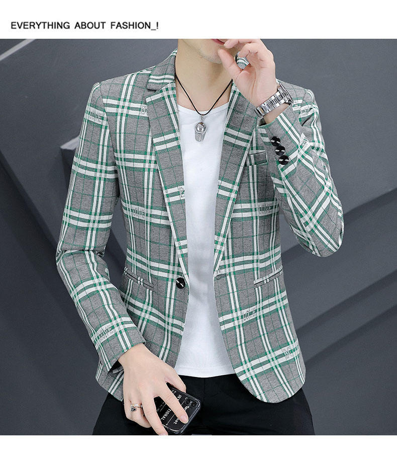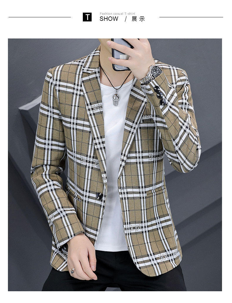 Compra Traje individual nuevo para hombre estilo coreano corte slim moda estilista moda traje a cuadros juvenil guapo chaqueta casual al por mayor en Joom.pro