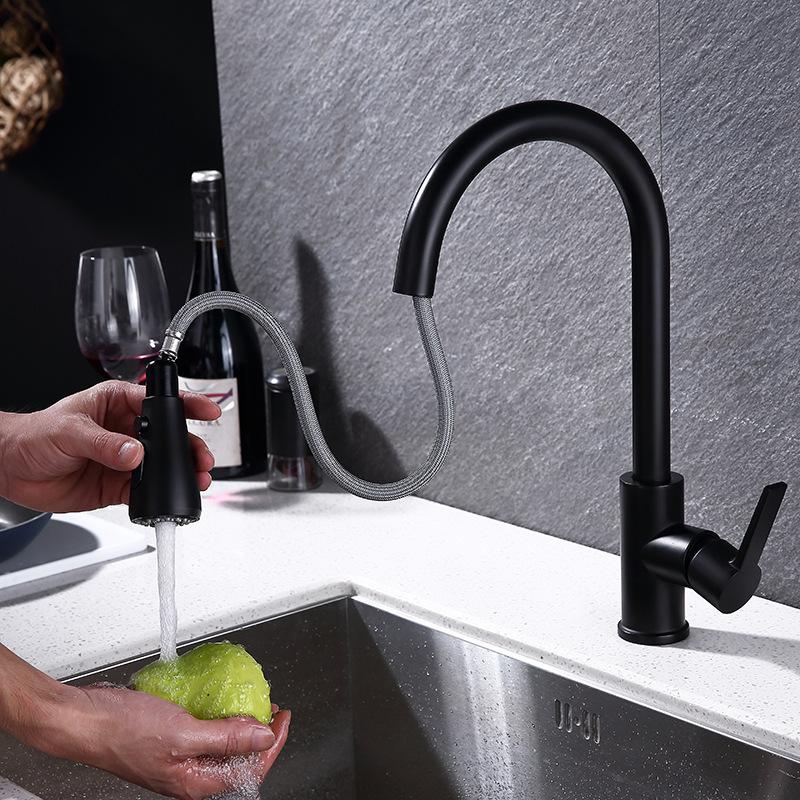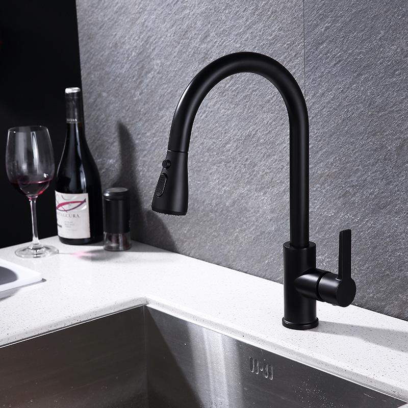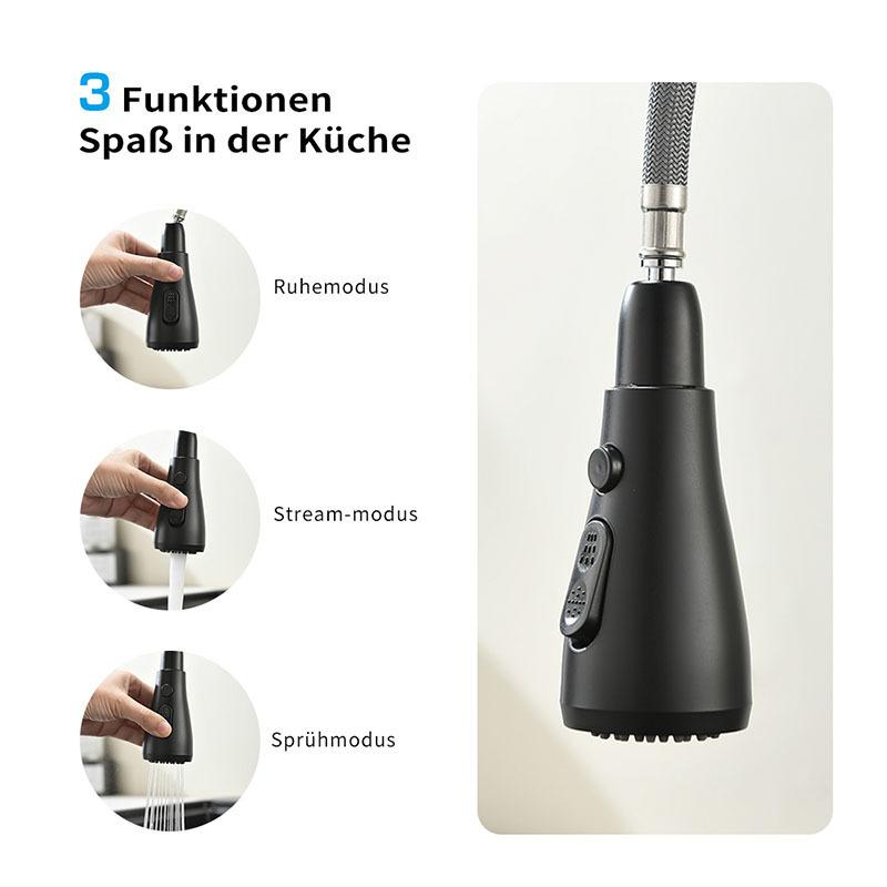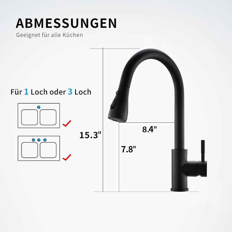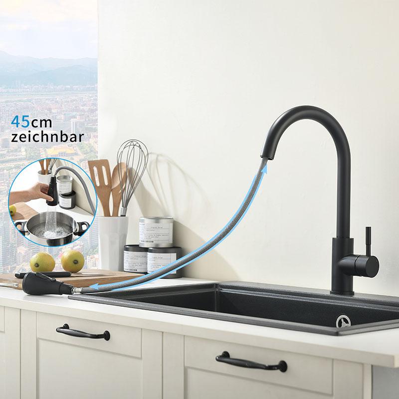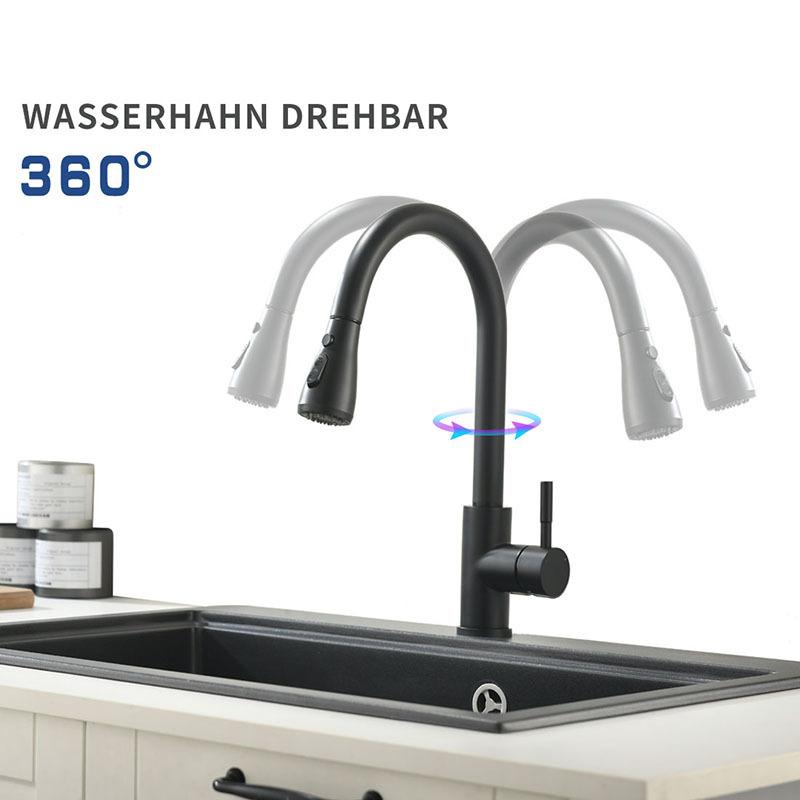 Fregadero de acero inoxidable 304 negro, fregadero doble, universal, giratorio, grifo de cocina multifuncional, agua caliente y fría