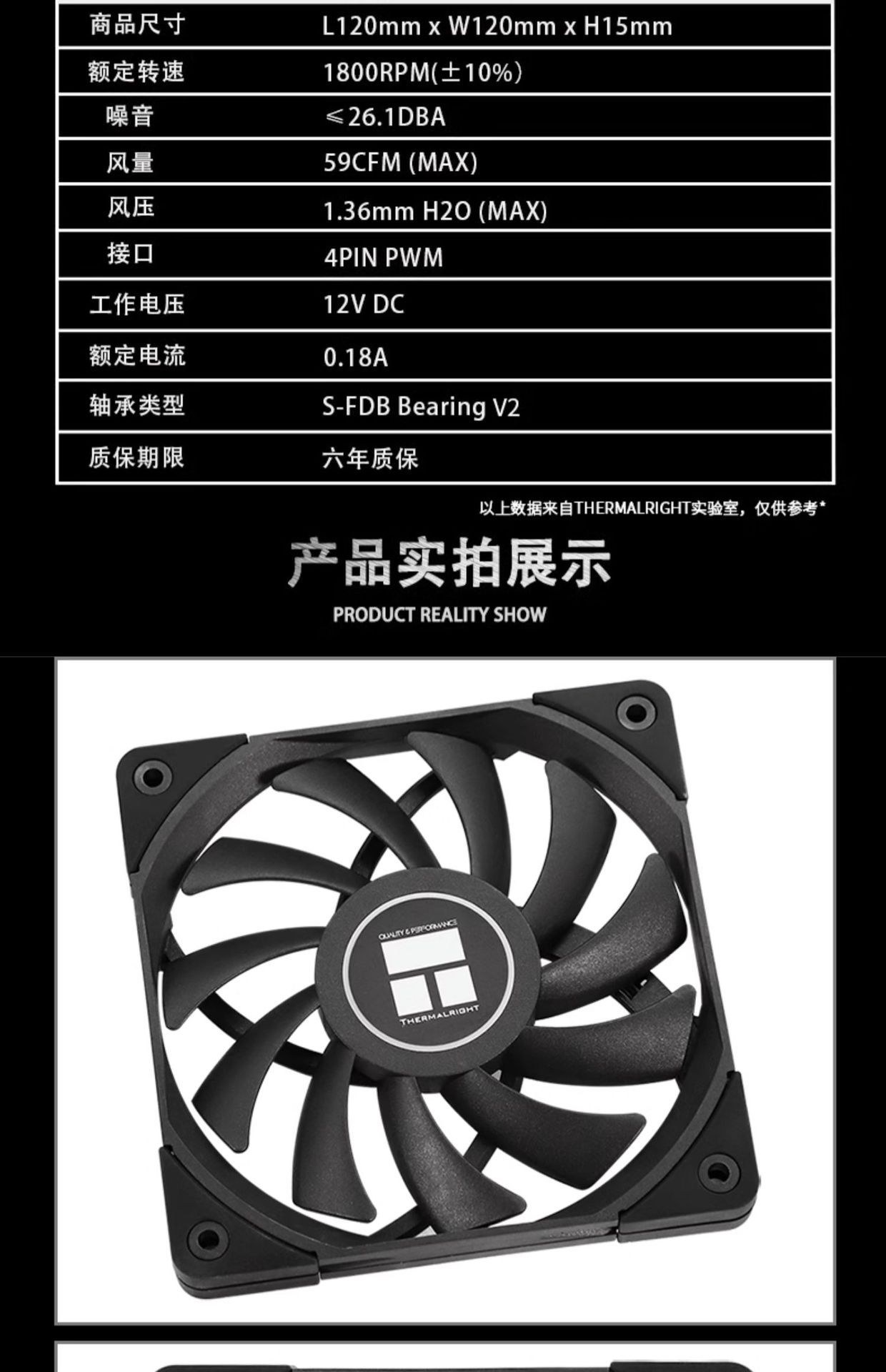 Ventilador de refrigeración de chasis Limin Thermalright C12015B de 12 cm, 1800 W, color negro fino
