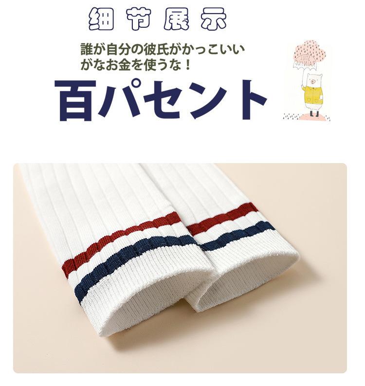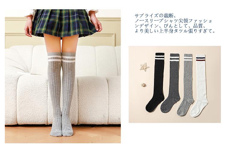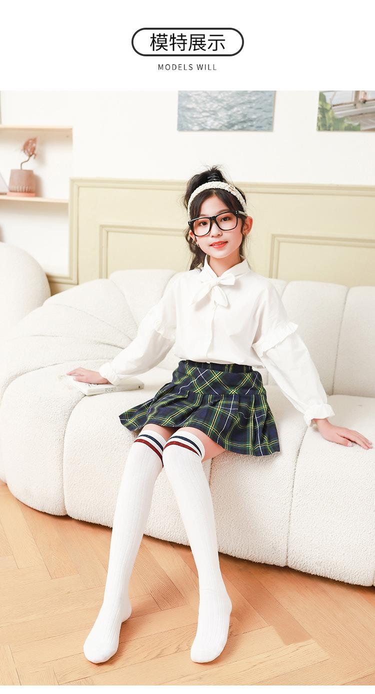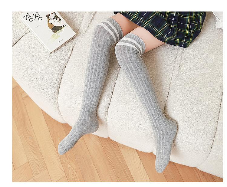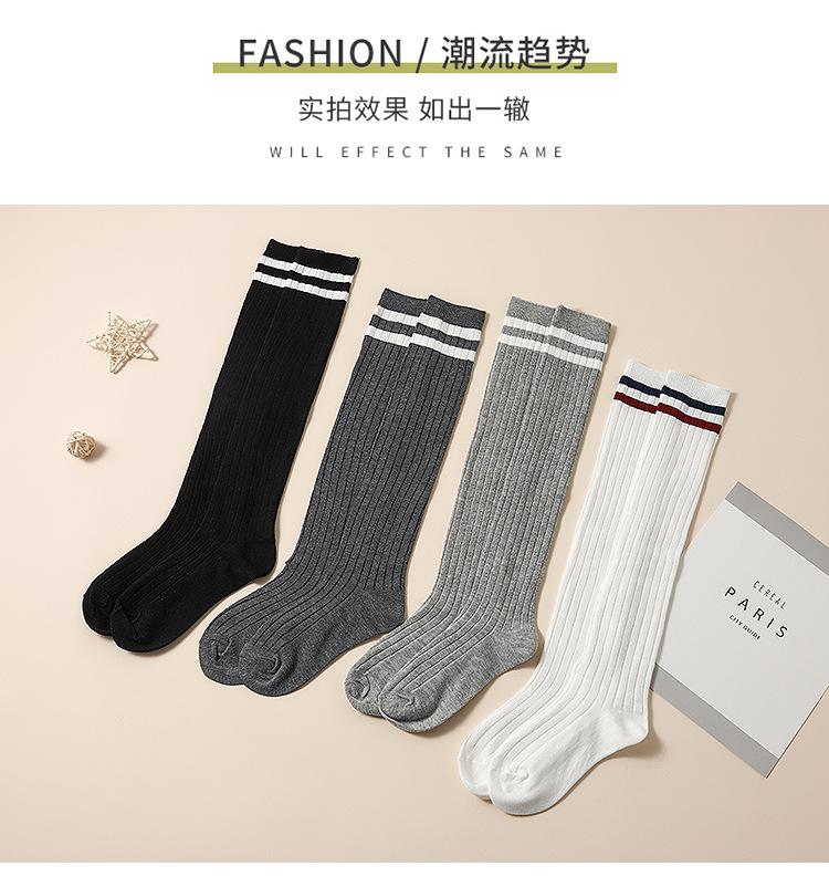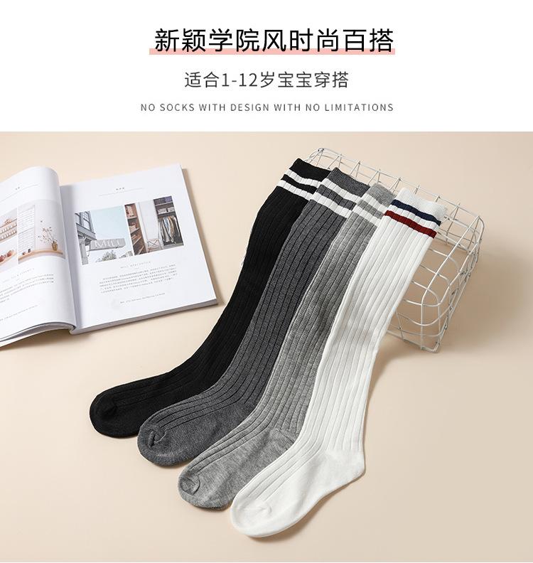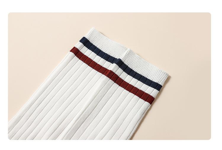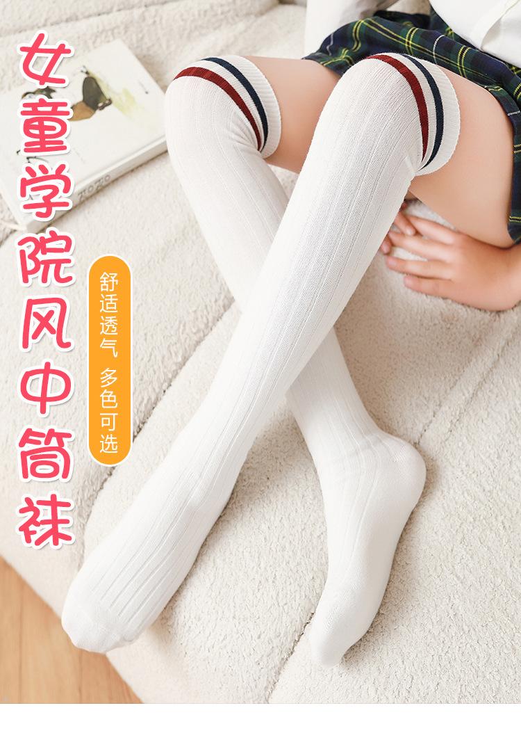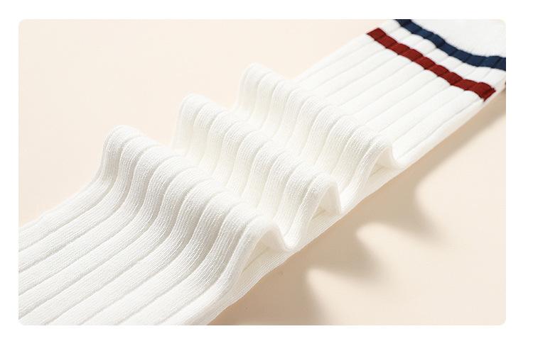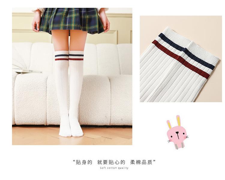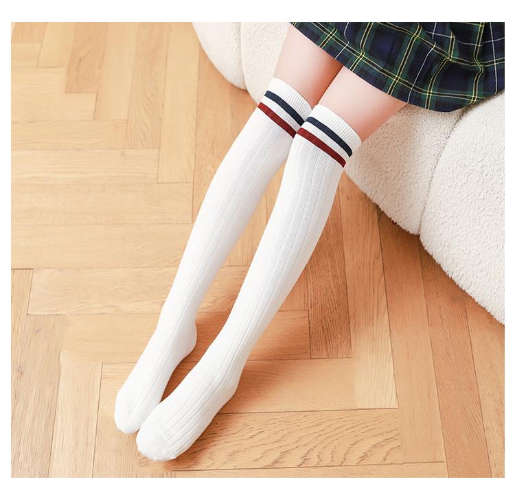 Medias de primavera y otoño para niñas, calcetines blancos de estudiante hasta la pantorrilla con dos rayas verticales, calcetines de algodón estilo universitario, calcetines por encima de la rodilla para niños.