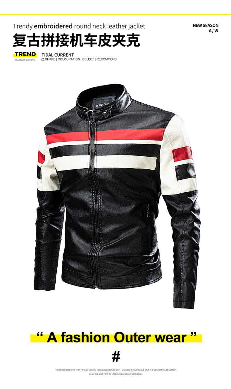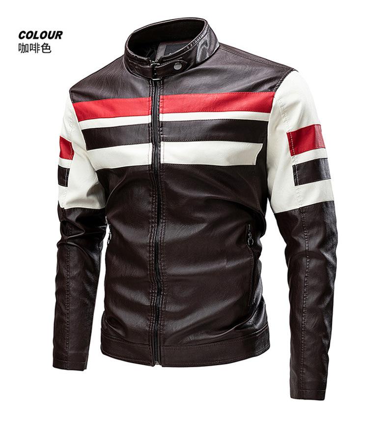 Chaqueta de cuero para hombre de Cross Border, nueva chaqueta de hombre, chaqueta de PU, ropa de motociclista, cuero forrado con polar para hombre