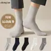 Calcetines desodorantes deportivos con aromaterapia para otoño e invierno para hombre, hasta media pantorrilla, transpirables, absorbentes del sudor, de color sólido, sencillos, a la moda, a juego.