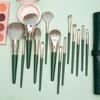 Set de Brochas de Maquillaje Cangzhou de 14 Piezas Green Cloud con Bolsa de Maquillaje, Brocha para Rubor, Herramientas de Belleza para Sombra de Ojos, Brocha para Contorno, Cosméticos