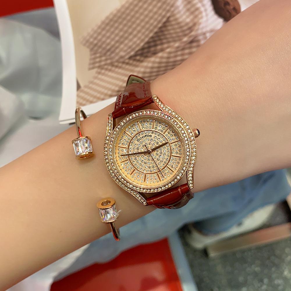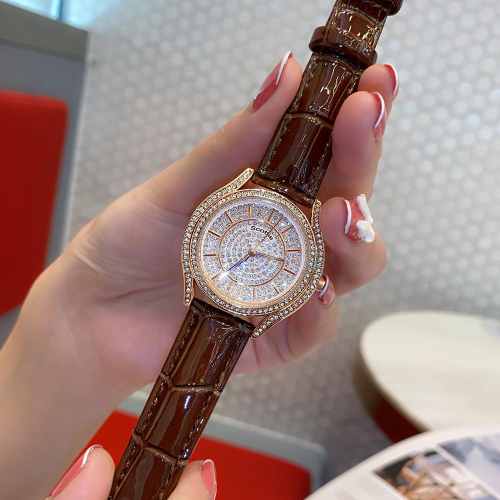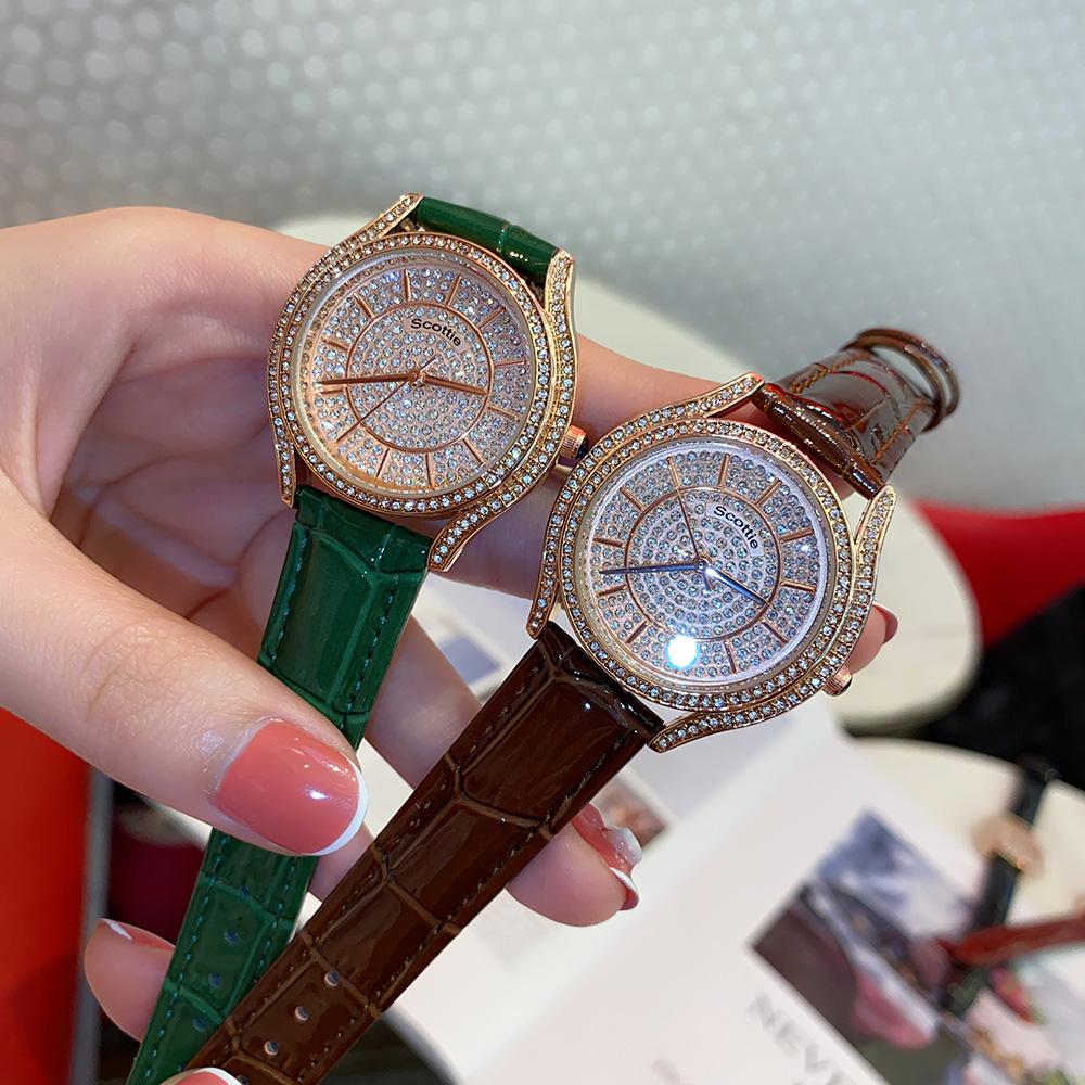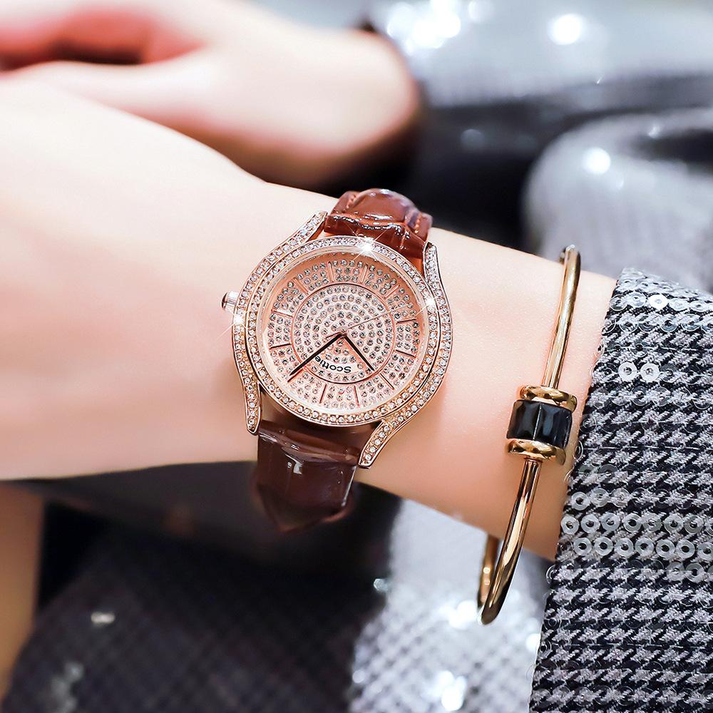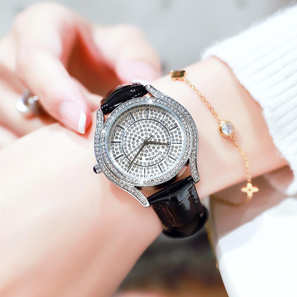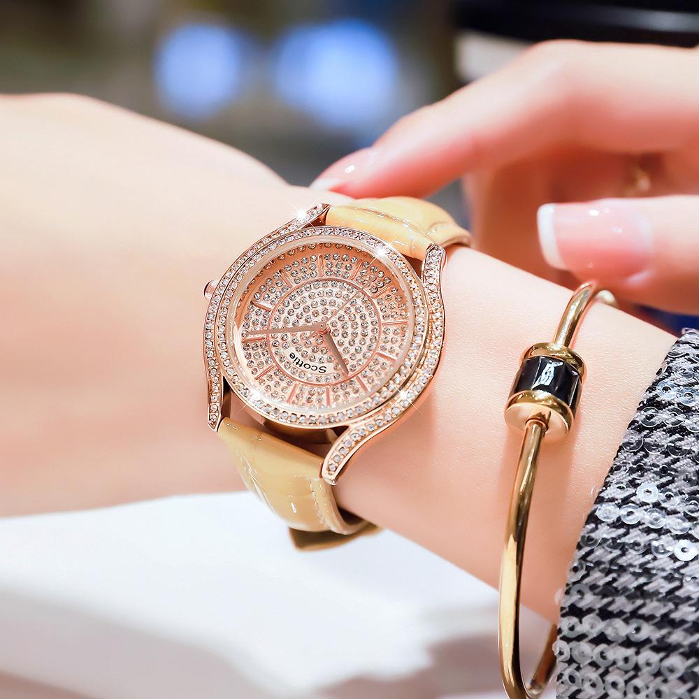 Compra Reloj de diamantes de lujo para mujer, correa de marca para mujer, resistente al agua, tendencia de moda, cuarzo redondo, reloj de mujer con diamantes completos, venta al por mayor al por mayor en Joom.pro
