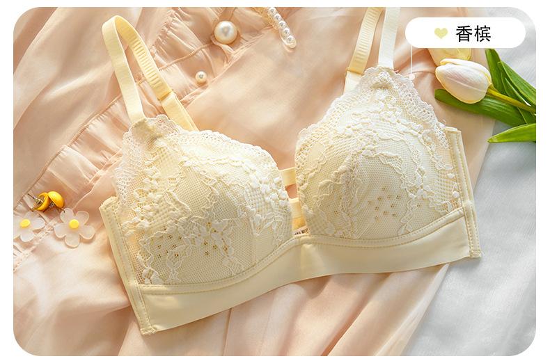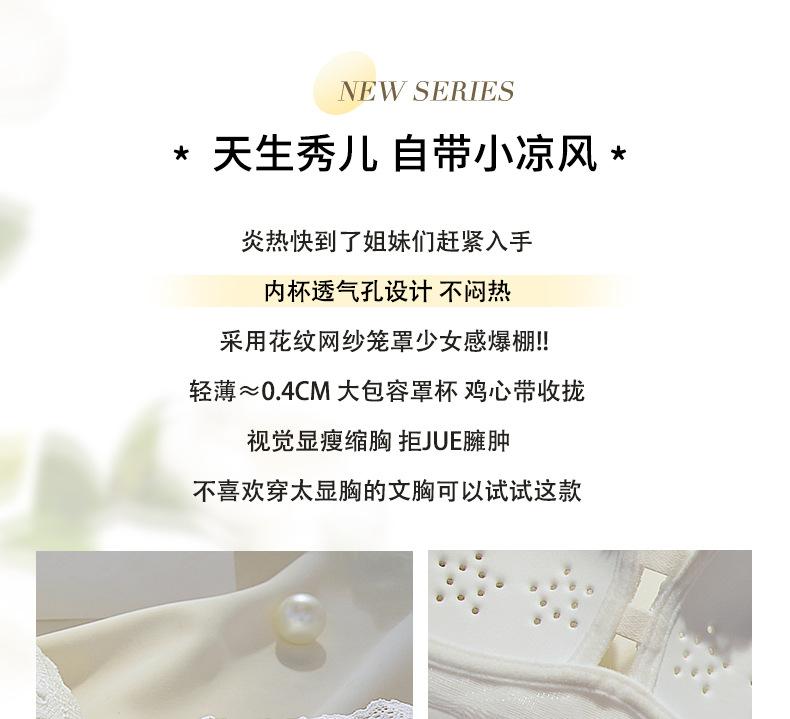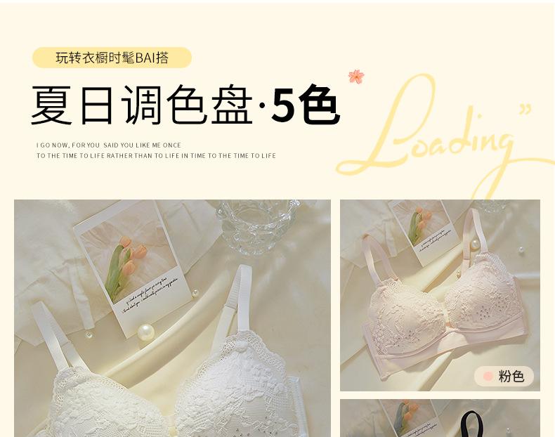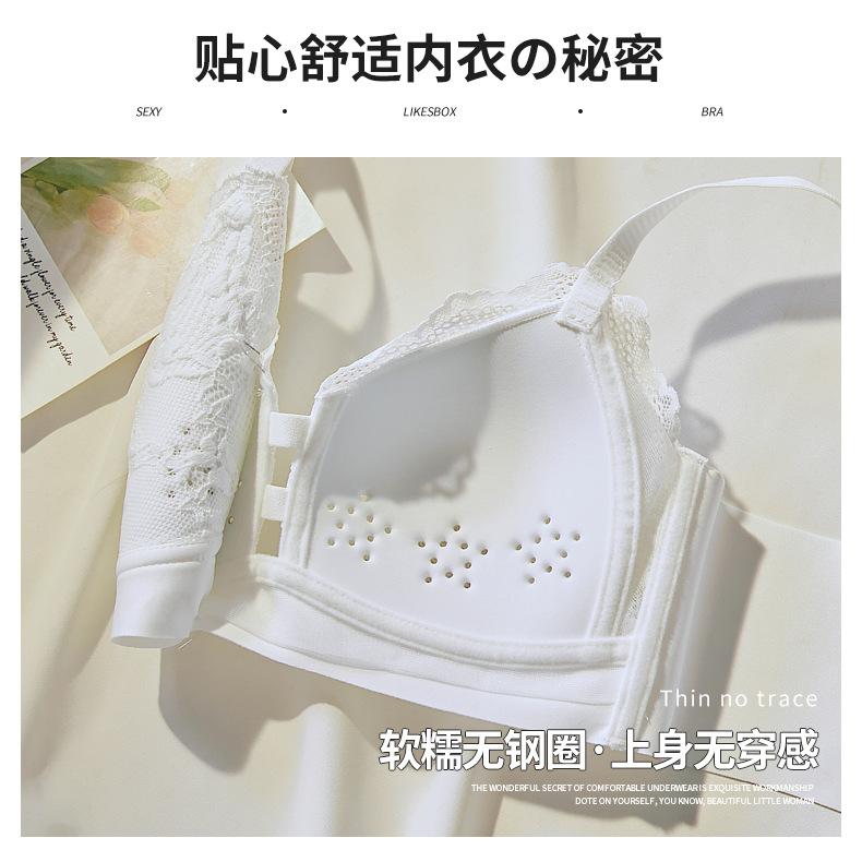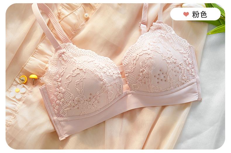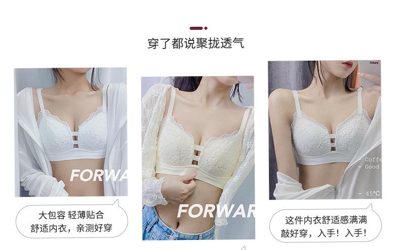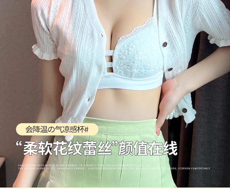 Ropa interior de encaje para mujer Ultradelgada Pecho grande Pequeño Push-up Paramamario Aros sin aros Talla grande Brasier Adelgazante Verano