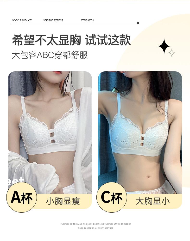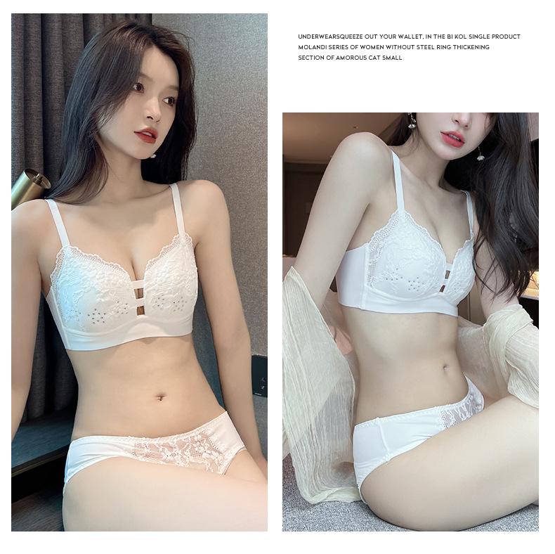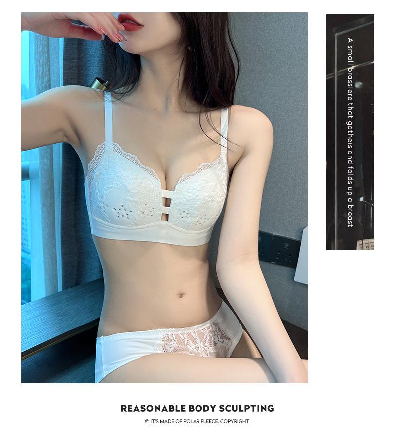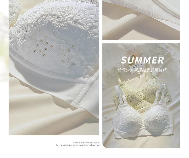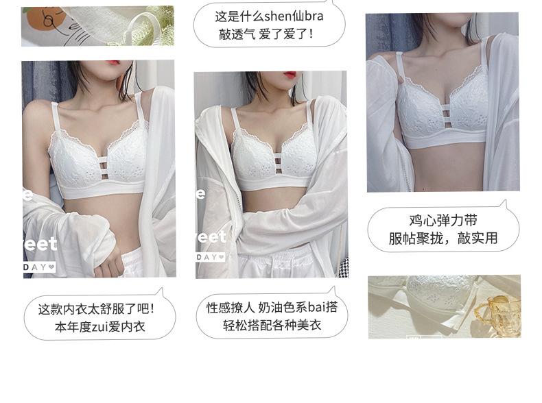 Ropa interior de encaje para mujer Ultradelgada Pecho grande Pequeño Push-up Paramamario Aros sin aros Talla grande Brasier Adelgazante Verano
