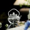 Tetera de vidrio de borosilicato de alta calidad, resistente a altas temperaturas, cuadrada y gruesa, con colador de acero inoxidable y forma de flor.