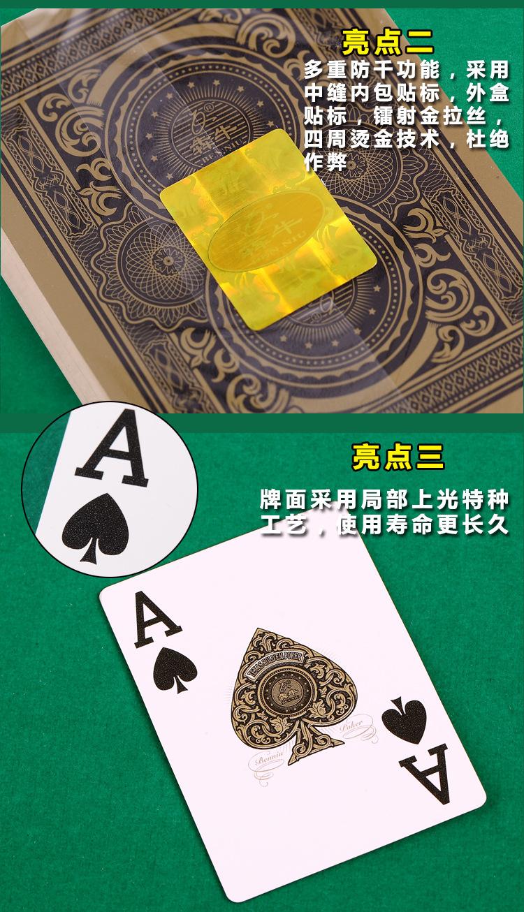 Productos genuinos Niu Tuhao Jindezhou Poker Gold Foil Gold Edge Plastic Large Character Mahjong Card Factory Wholesale