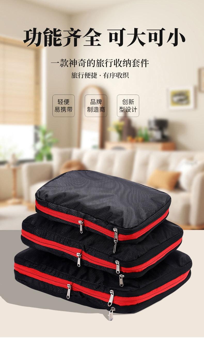 Traje de Bolsa de Almacenamiento de Compresión de Tres Piezas de Nailon para Viajes Transfronterizos, Bolsa con Cremallera para Acabado de Ropa, Impermeable, de Doble Capa