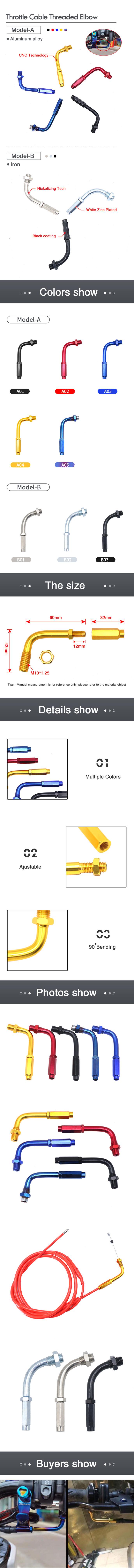 Nombre del producto: Motocicleta Vehículo todoterreno Modificado Cabeza de tornillo de cable de acelerador ajustable de 90 grados