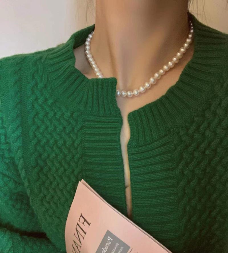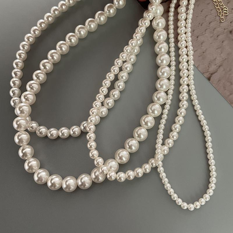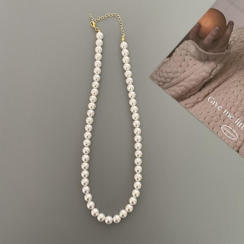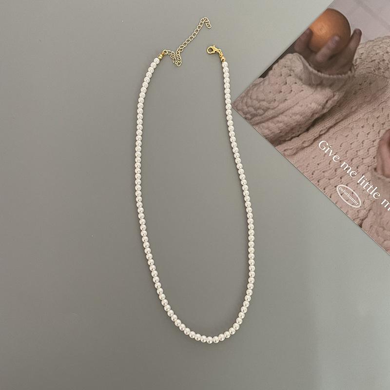 Collar de perlas simple y versátil de primavera y verano con nicho en el mismo collar apilado de cadena de clavícula con temperamento de personalidad retro