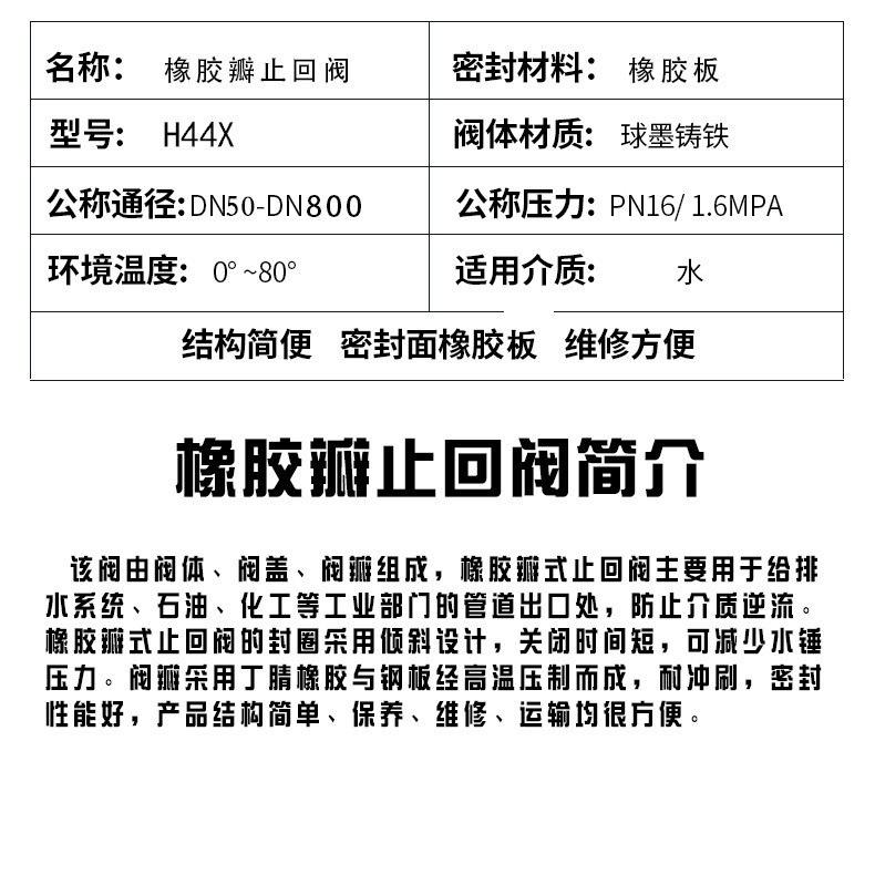 Válvula de Retención de Aleta de Goma de Suministro Válvula de Retención Brida Válvula de Retención de Hierro Dúctil Válvula de Retención para Aguas Residuales H44X