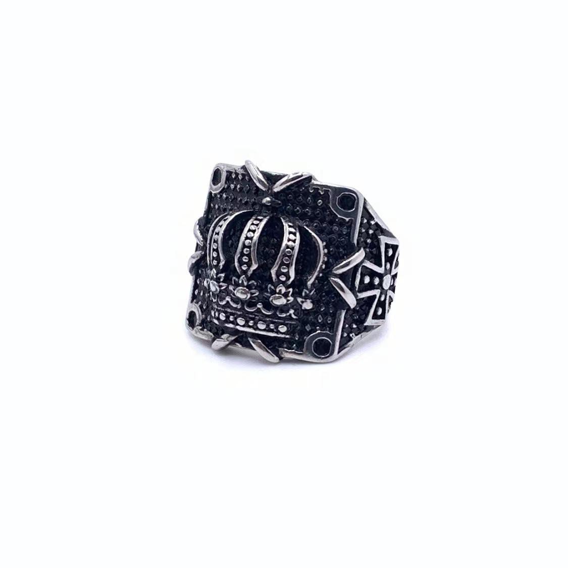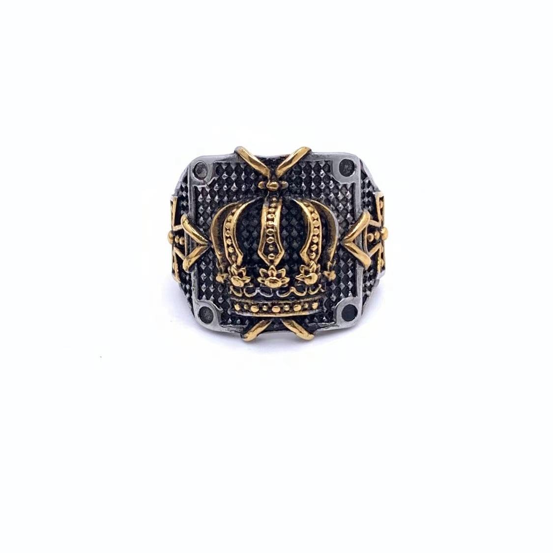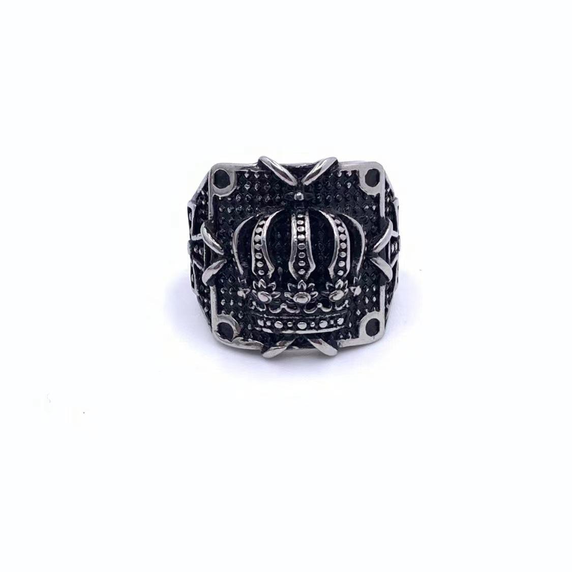 Anillo de corona de moda personalizada retro europea y americana para hombre de acero de titanio joyería de acero inoxidable al por mayor transfronteriza de comercio exterior