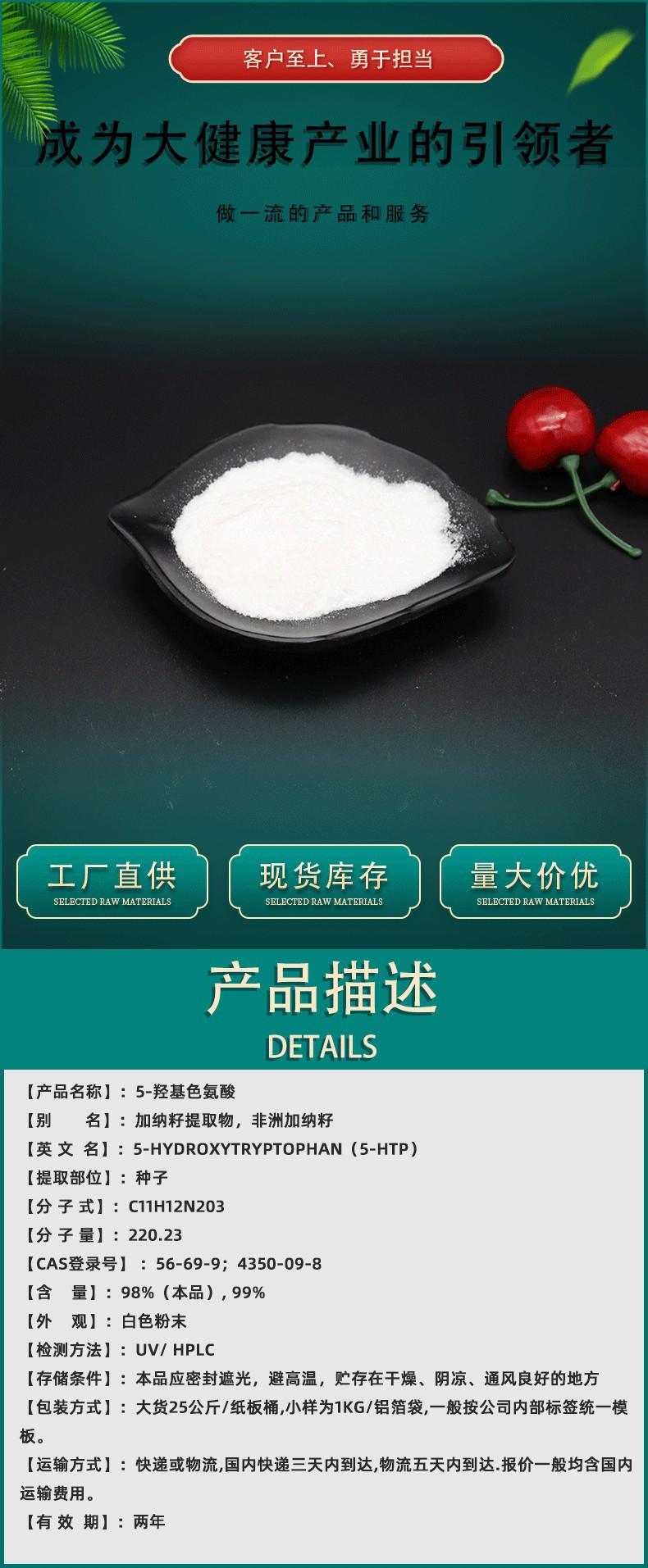 5-hidroxitriptófano 98% Organismo de fruta de madera Extracción de semillas de Ghana Semilla de Ghana 5-HT 100 g/bolsa Envío gratuito
