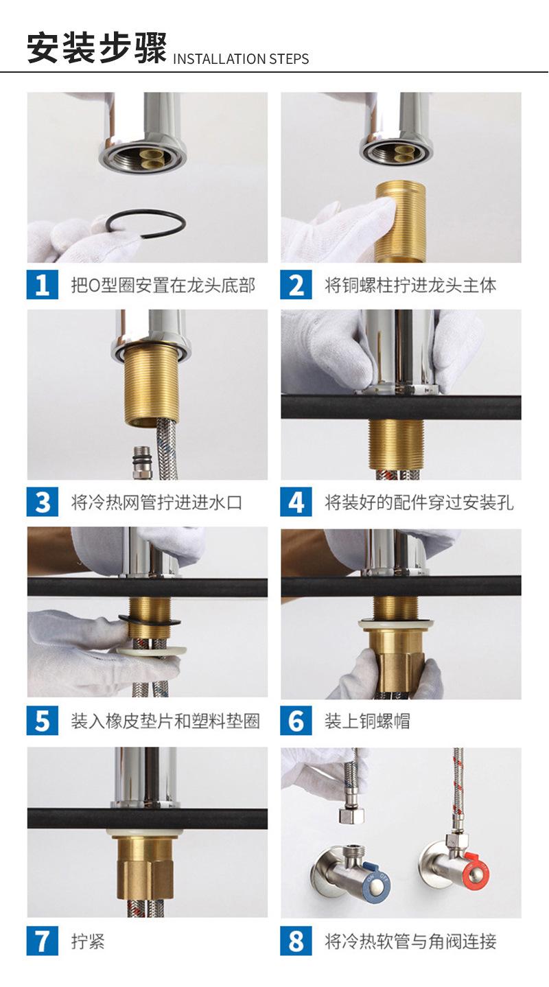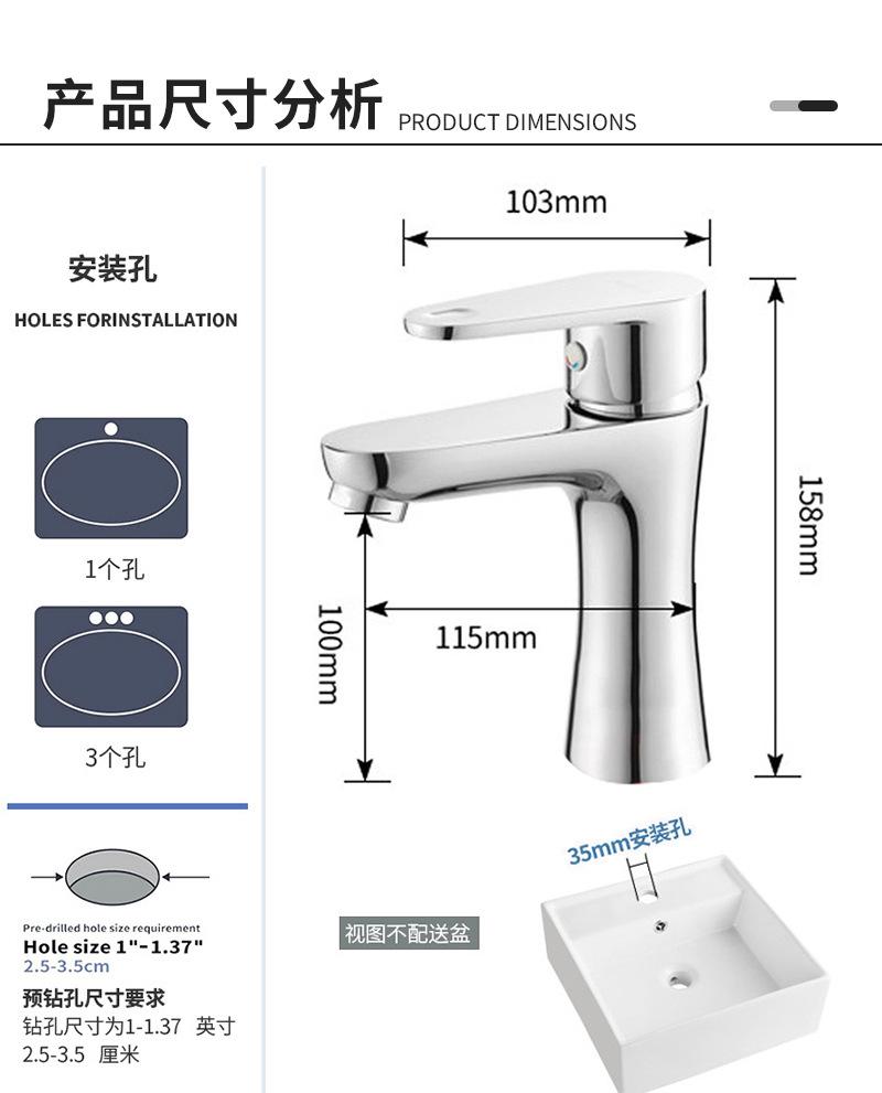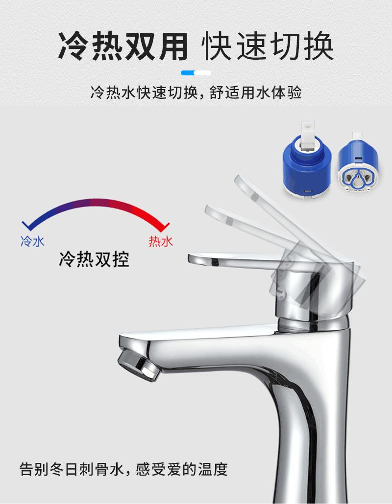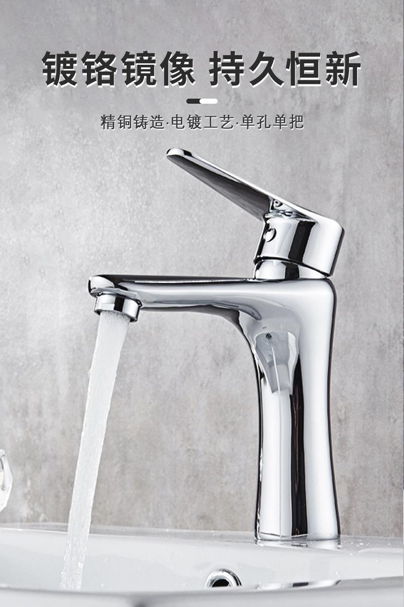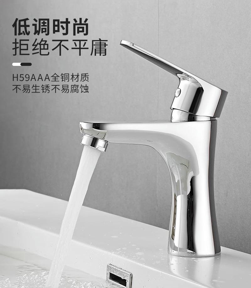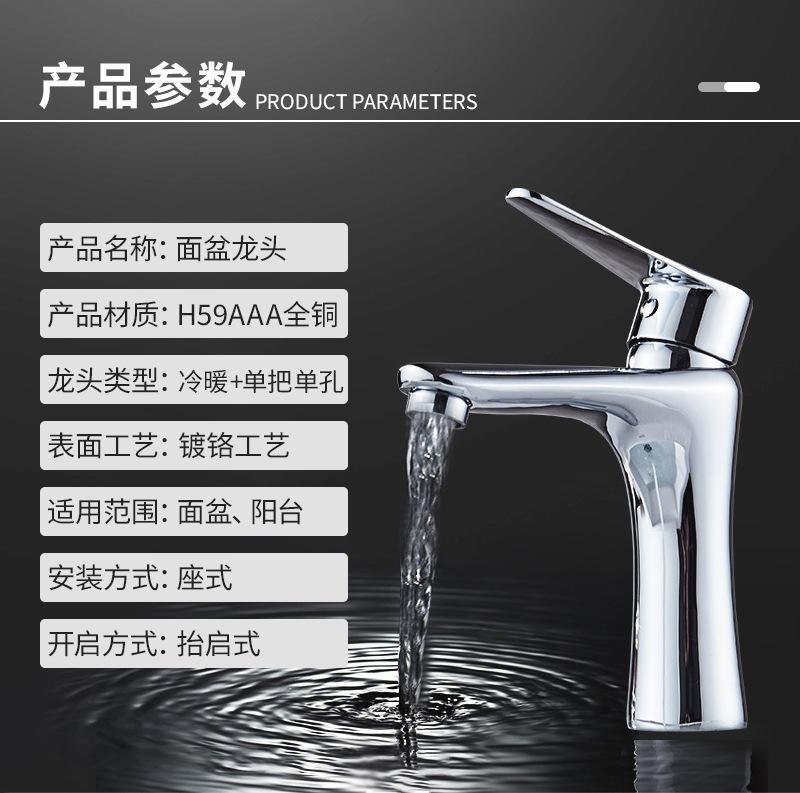 Grifo de Lavabo Todo Cobre para Baño Doméstico Lavabo Monomando Monoperforado Mezclador de Agua Fría y Caliente
