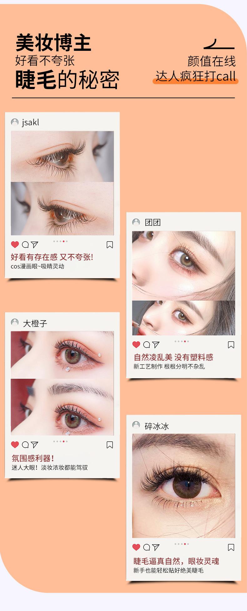 Pestañas postizas segmentadas, de moda, combinables con todo, naturales, para cabello, ojos agrandados, simulación de madre, sensación gruesa y rizada.