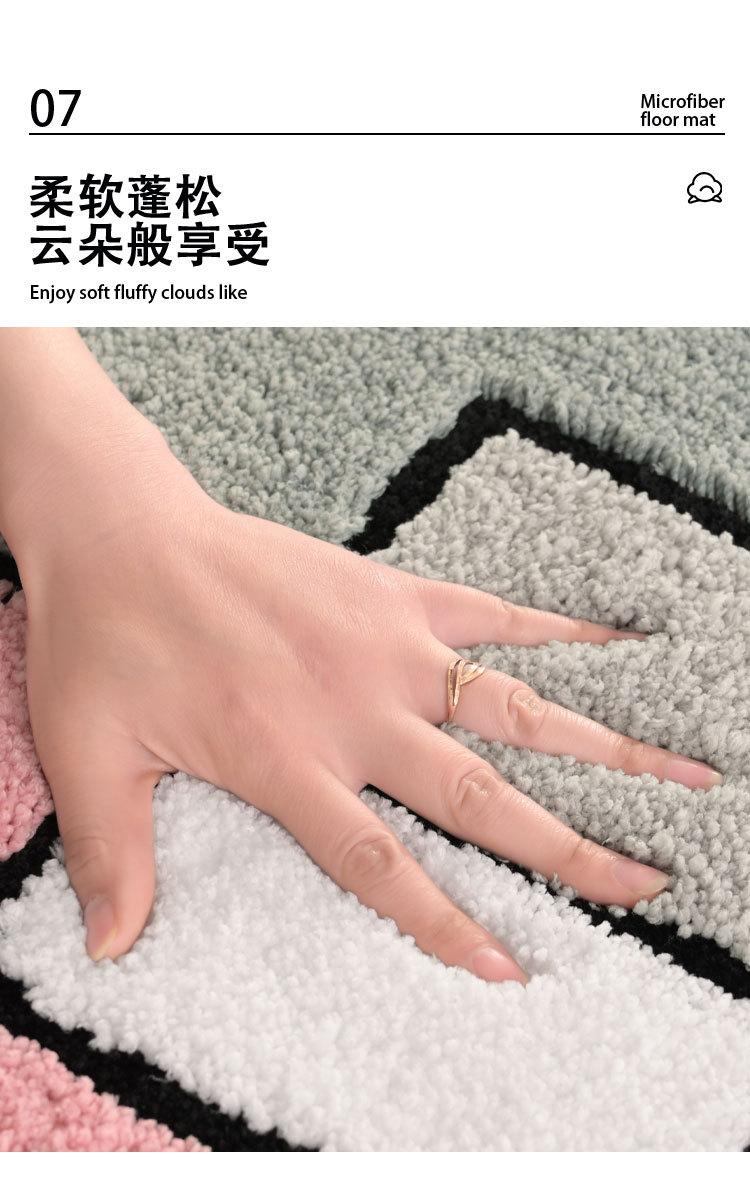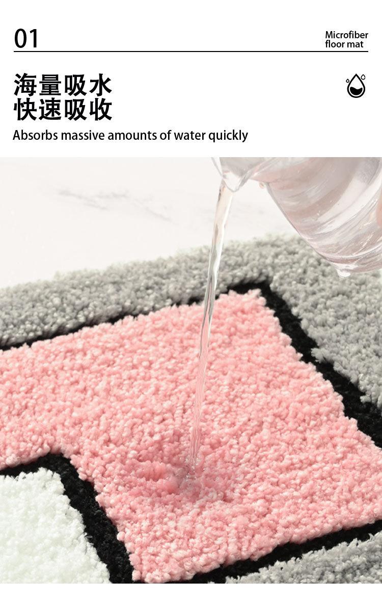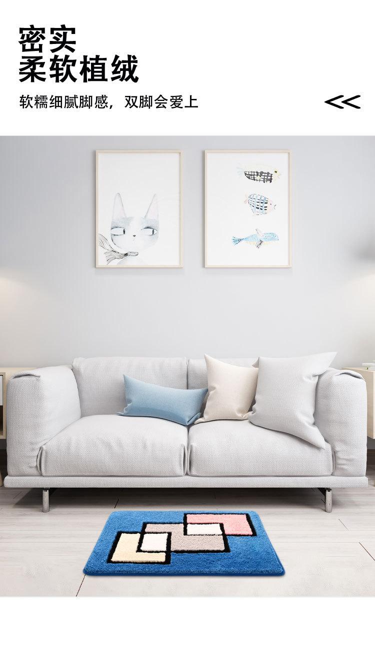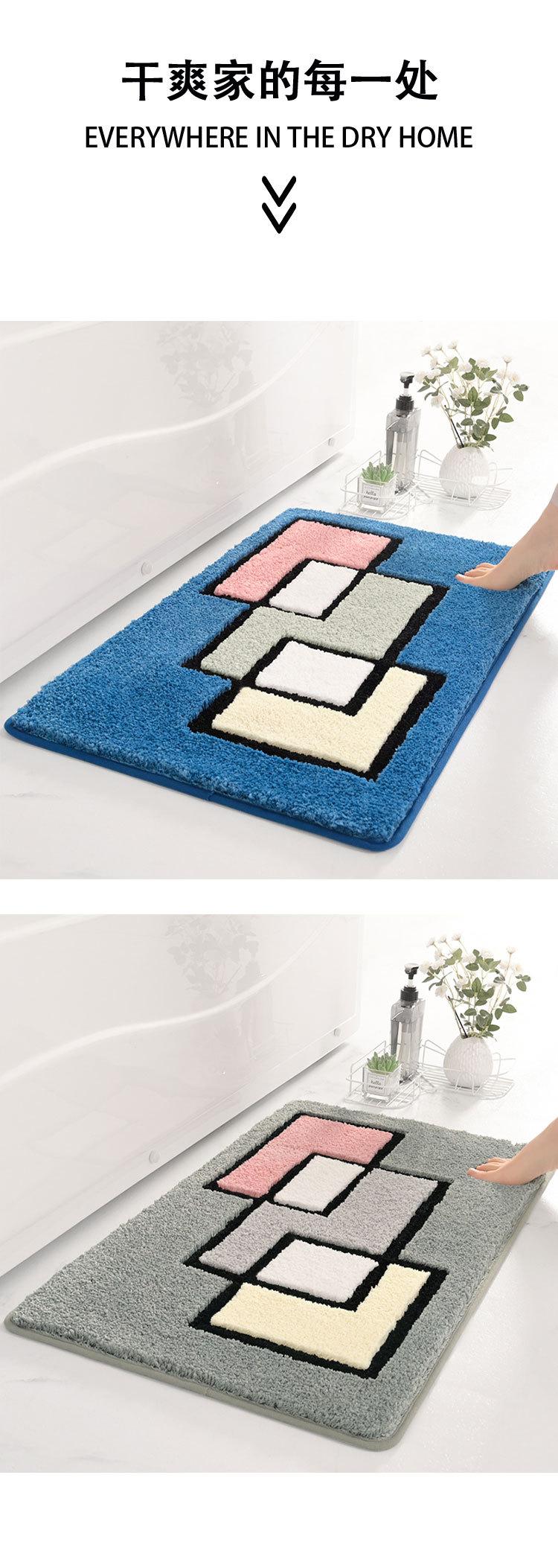 Nueva alfombra de baño antideslizante con diseño de flocado cuadrado transfronterizo, sencilla, absorbente de agua y resistente a la suciedad, para puerta de dormitorio.