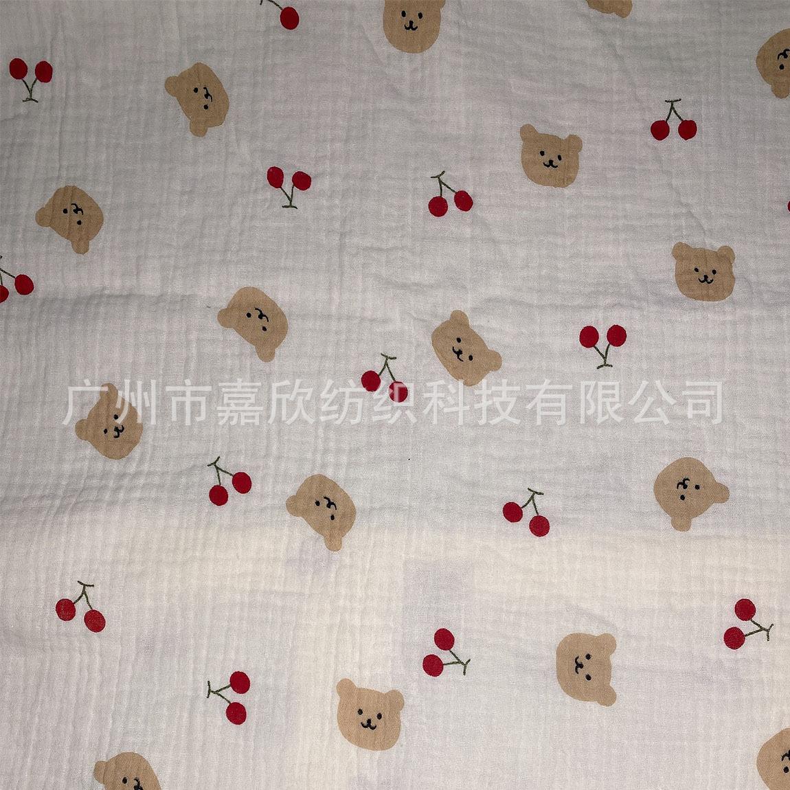 Tela de gasa de doble capa de algodón puro con estampado de oso de dibujos animados para ropa de bebé, pijamas y mantas.