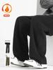 Pantalones gruesos de felpa de algodón puro con forro para hombre, pantalones largos casuales cálidos de pierna recta holgados, pantalones deportivos para hombre con diseño elástico