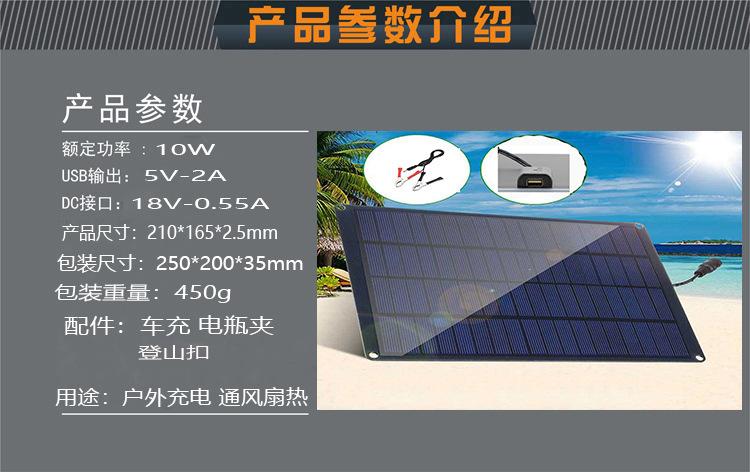 Panel solar flexible para exteriores, venta caliente transfronteriza, conveniente, 10W5V, placa de carga USB única, placa de generación de energía, conjunto fotovoltaico