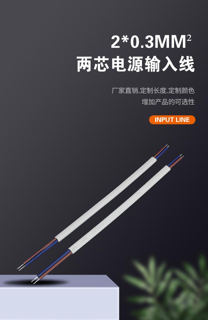 Línea de entrada de alimentación LED de línea plana de dos núcleos con vaina blanca de 2 * 0,3 mm